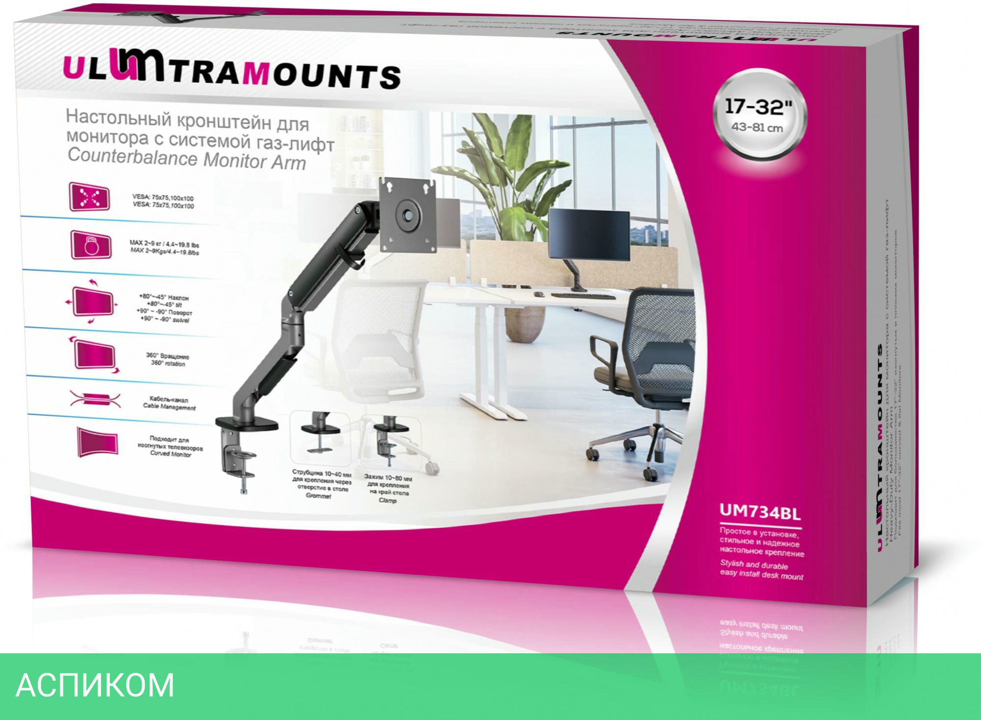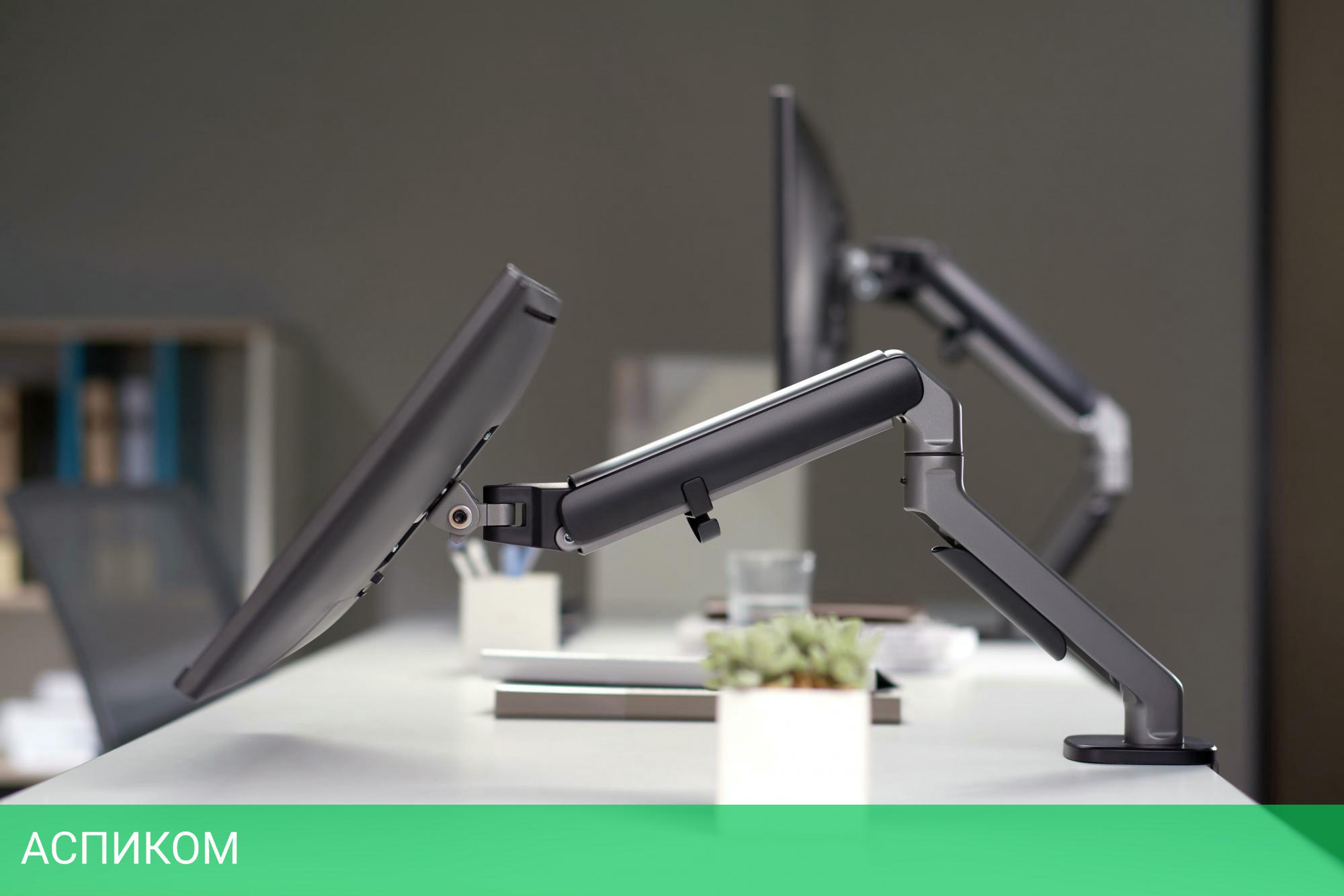 Настольный кронштейн для монитора с системой газ-лифт. Пружинный механизм позволяет легко перемещаться вверх и вниз.