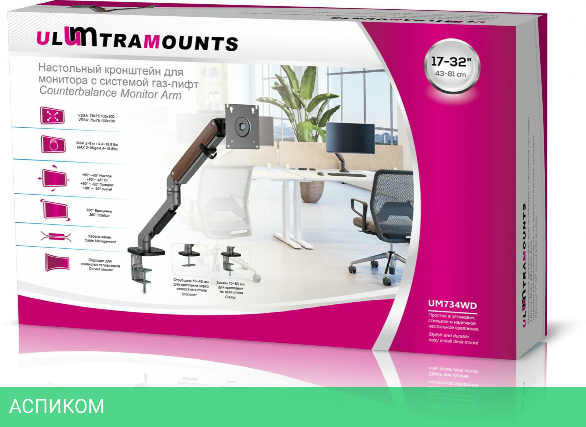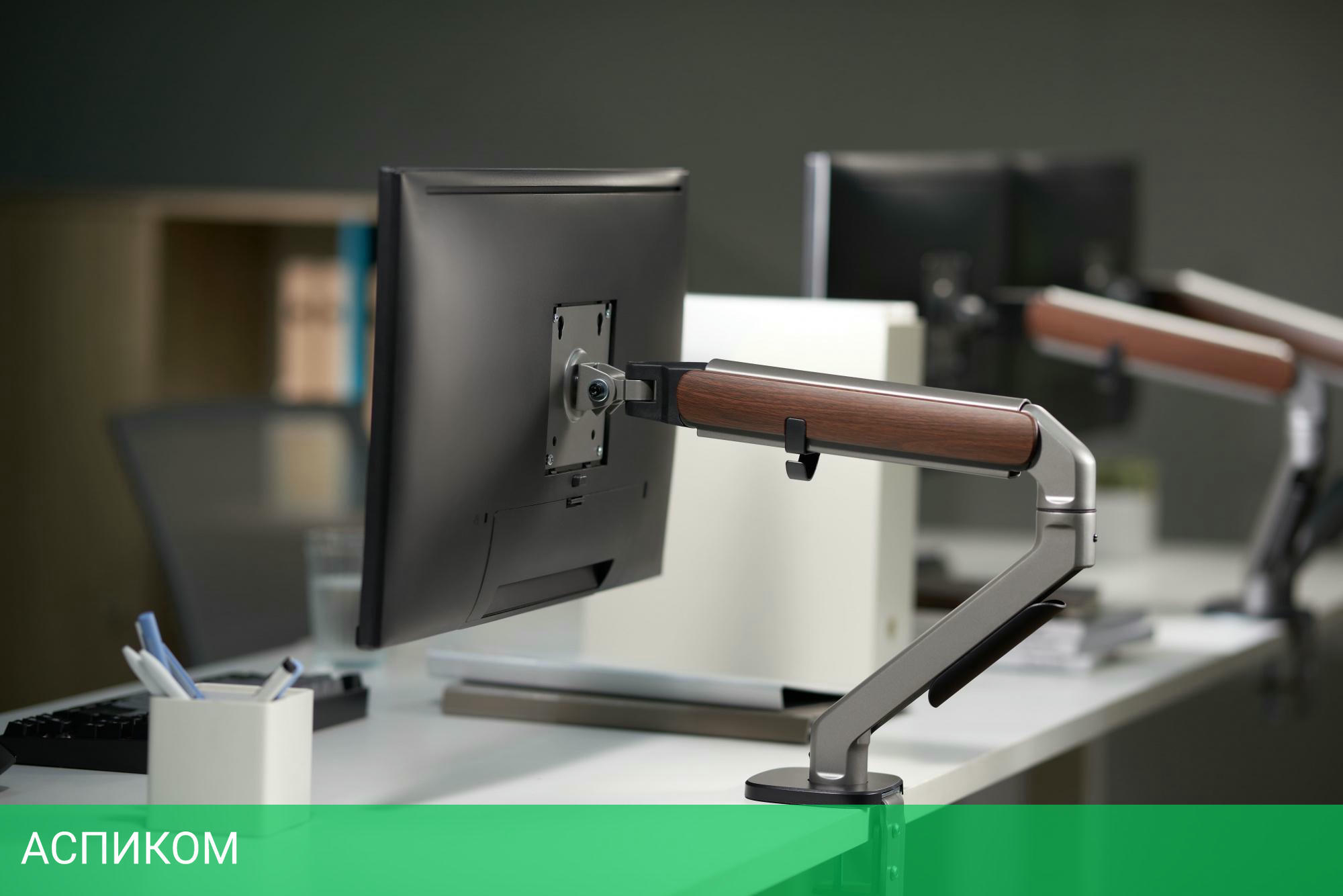 Настольный кронштейн для монитора с системой газ-лифт. Пружинный механизм позволяет легко перемещаться вверх и вниз.