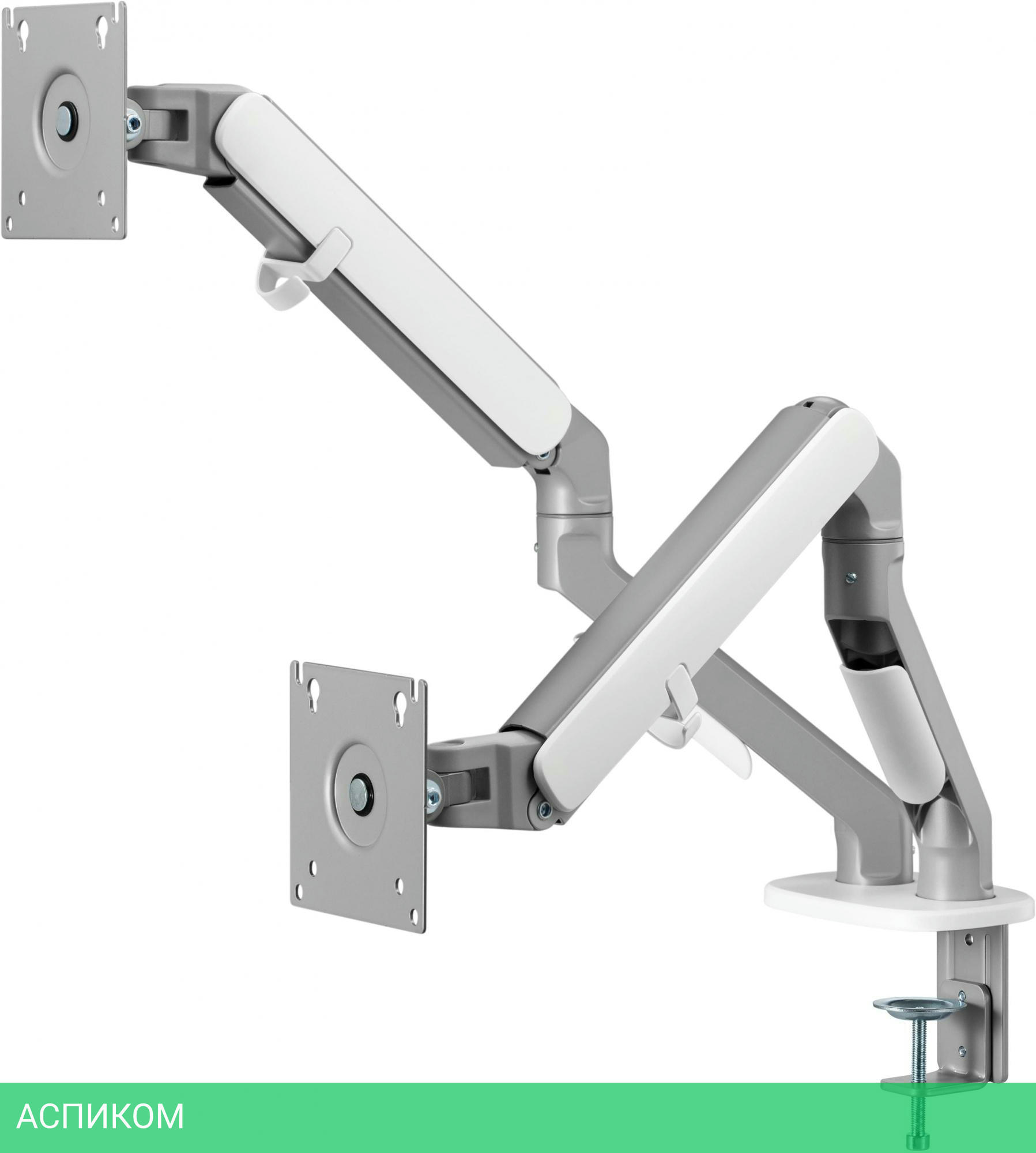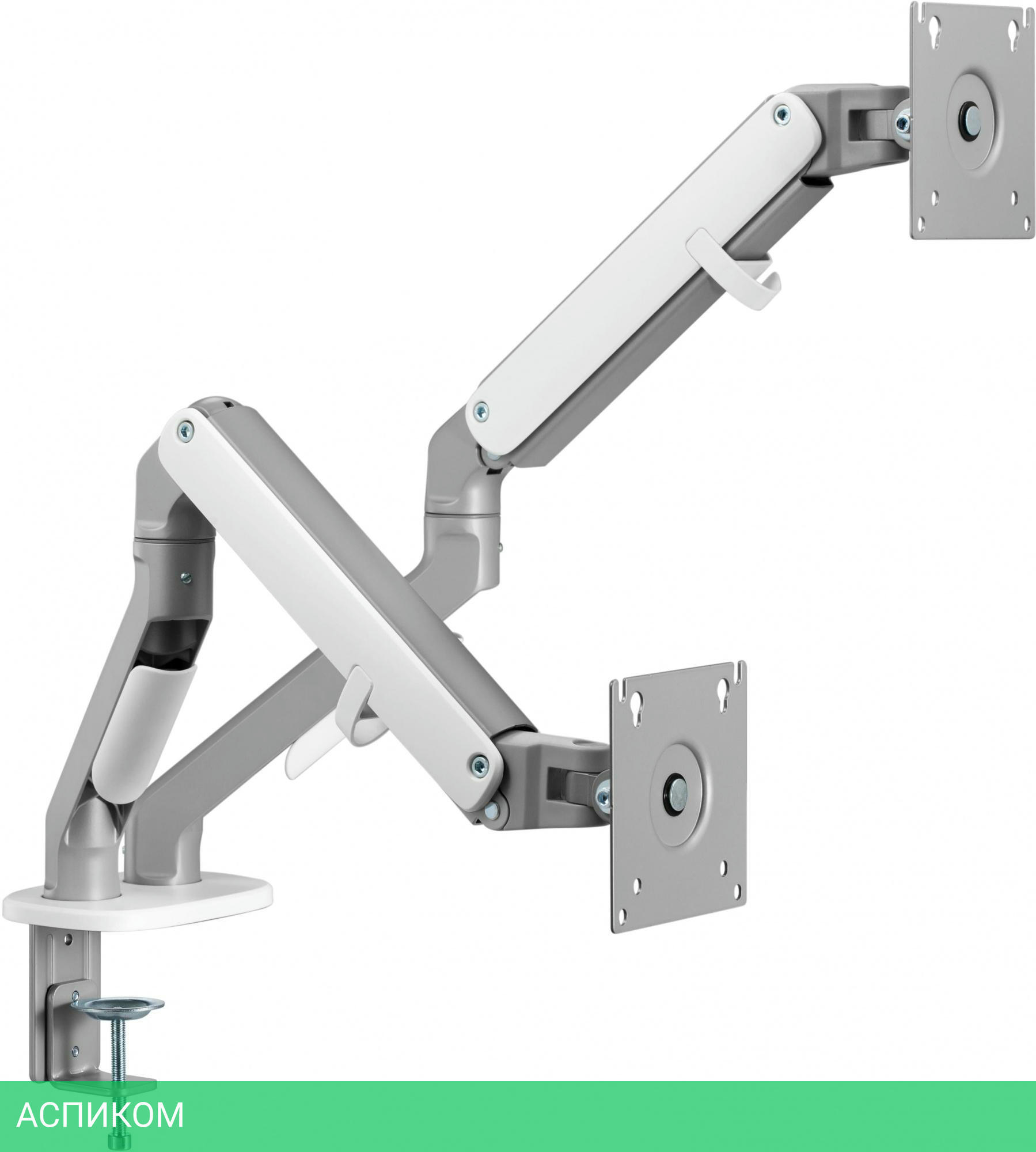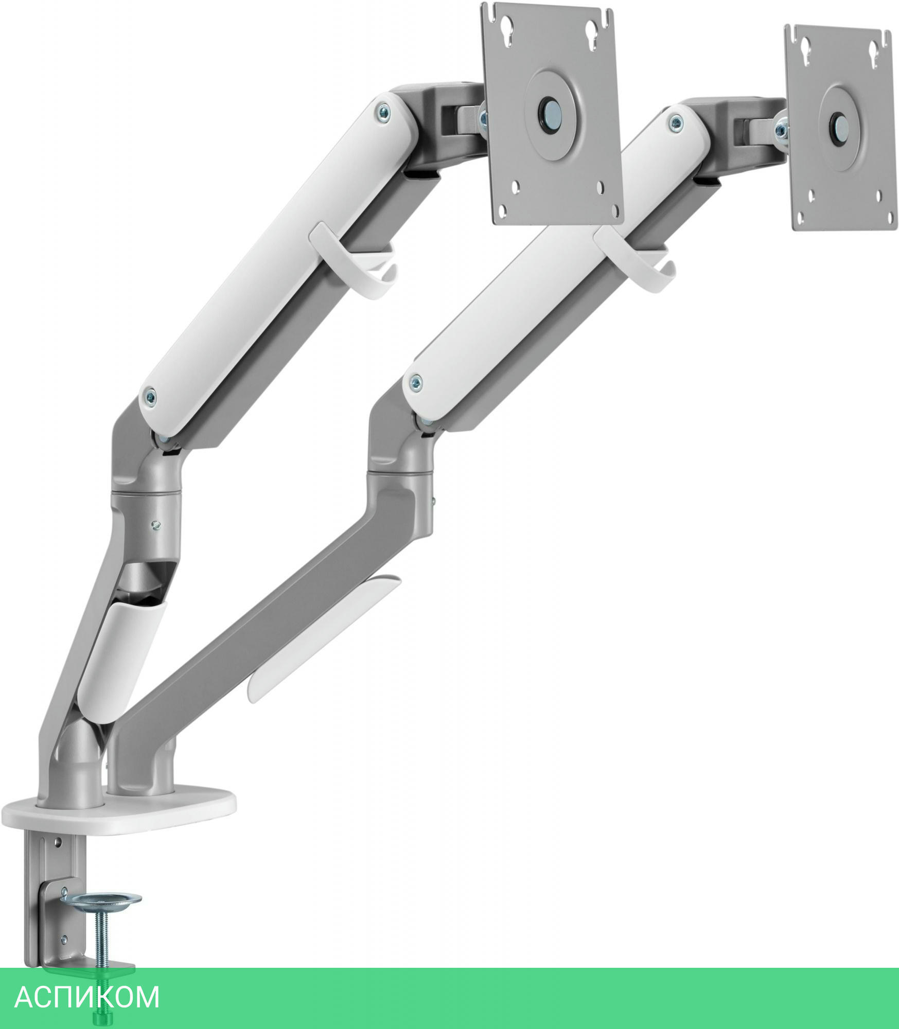 Настольный кронштейн с двумя креплениями под мониторы. Встроенный пружинный механизм натяжения поможет для идеальной регулировки веса.