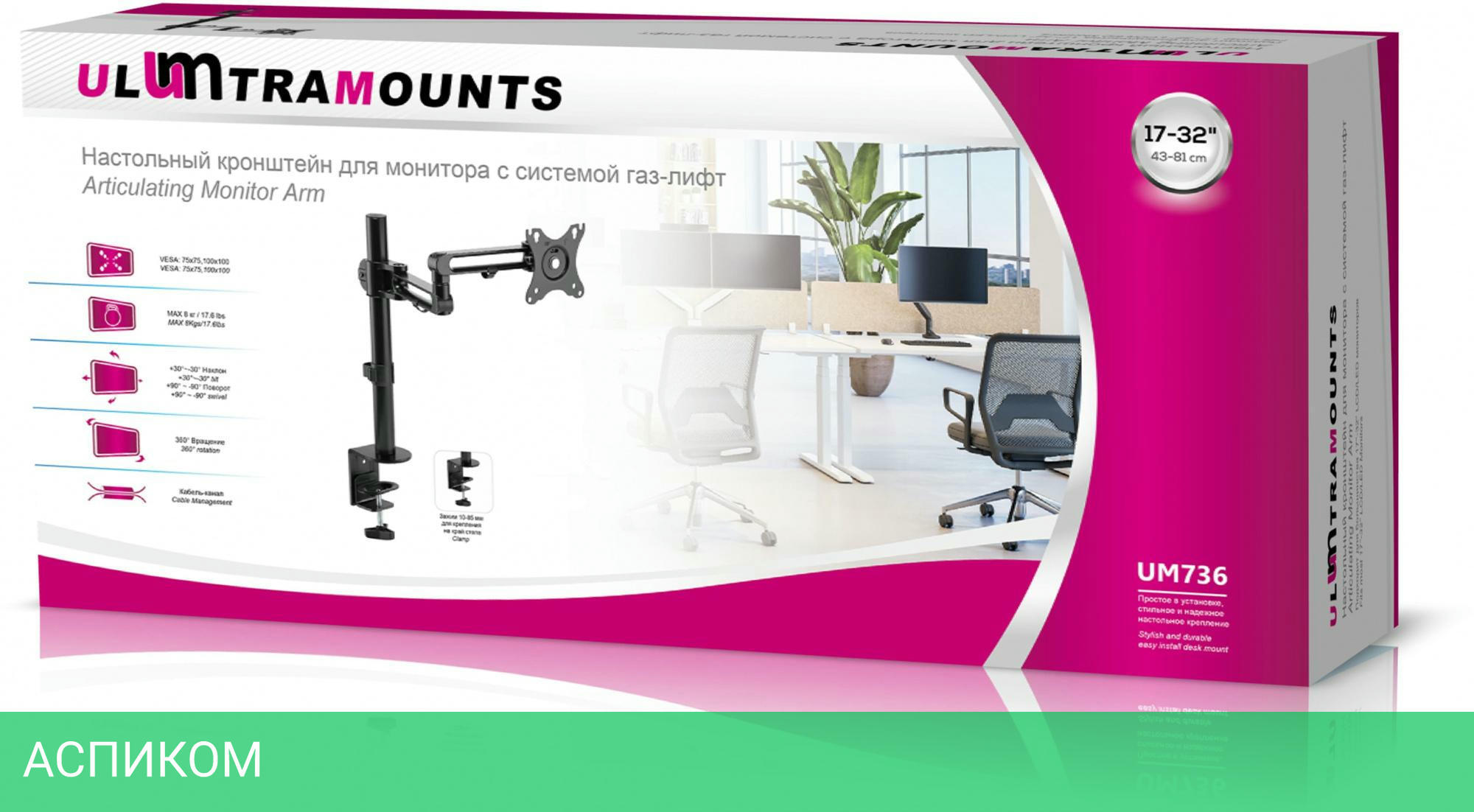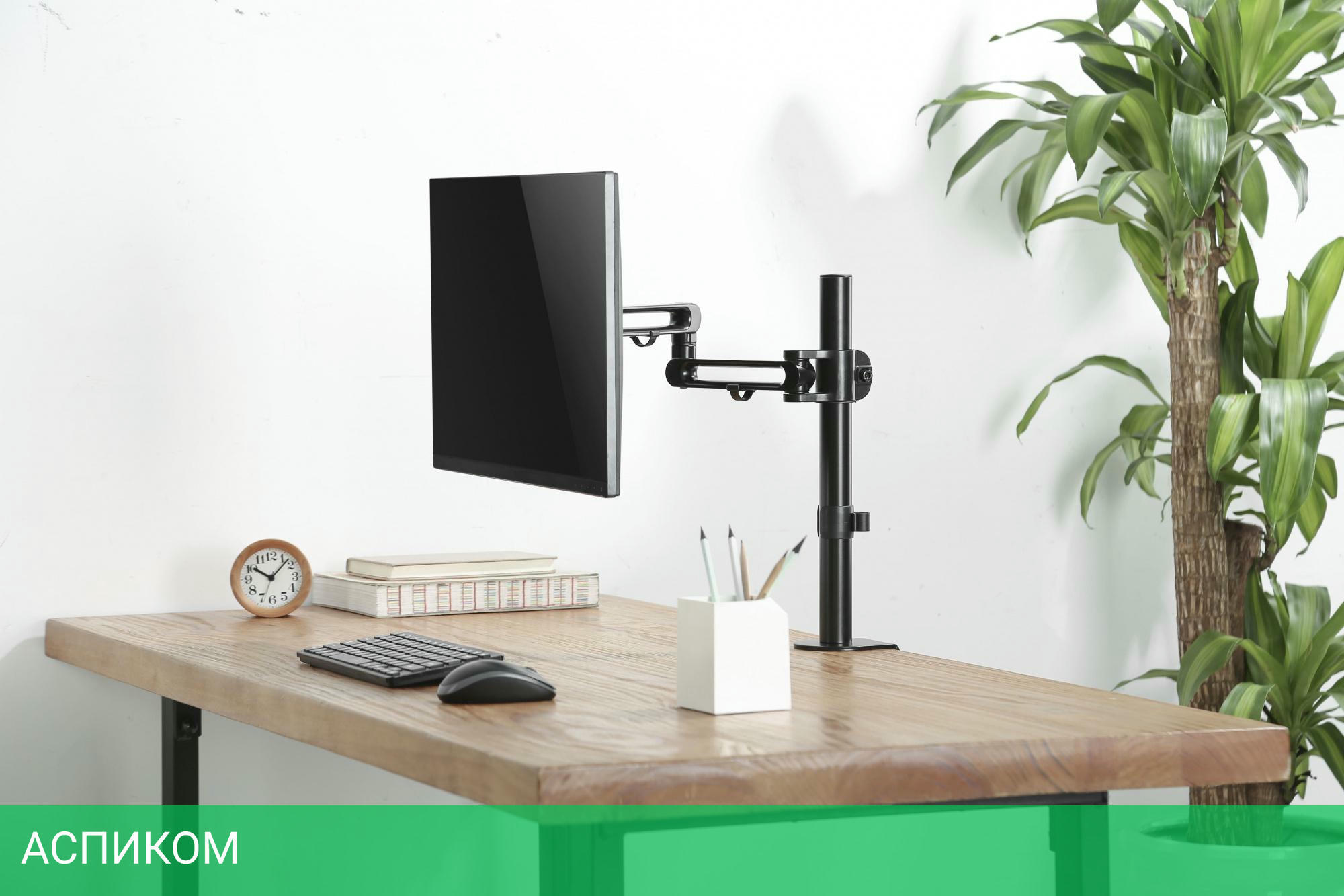 Настольный кронштейн для монитора с системой газ-лифт. Пружинный механизм позволяет легко перемещаться вверх и вниз.