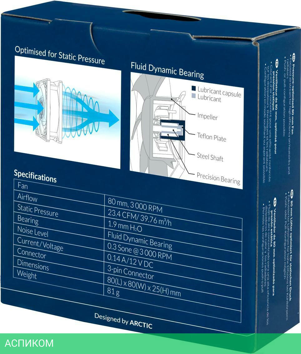 вентилятор / 8.0 / для корпуса / 2.5 / нет / 3000.0 / нет / воздушное / 22.5 / пластик / 80 / гидродинамический (FDB) / нет / 8.0 / черный