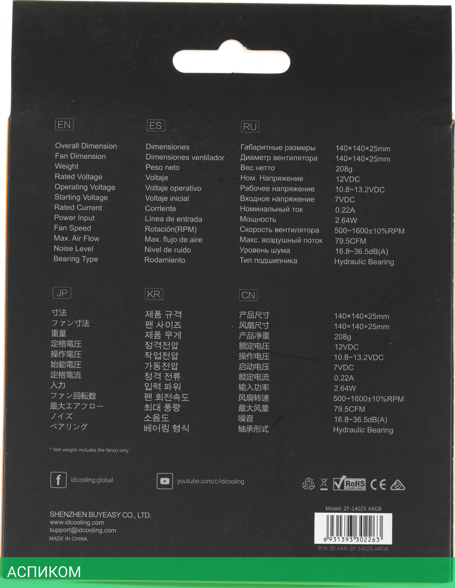 вентилятор / 15.0 / для корпуса / 2.5 / 1600.0 / черный / воздушное / 36.6 / пластик / 140 / гидродинамический (FDB) / да / 14.0