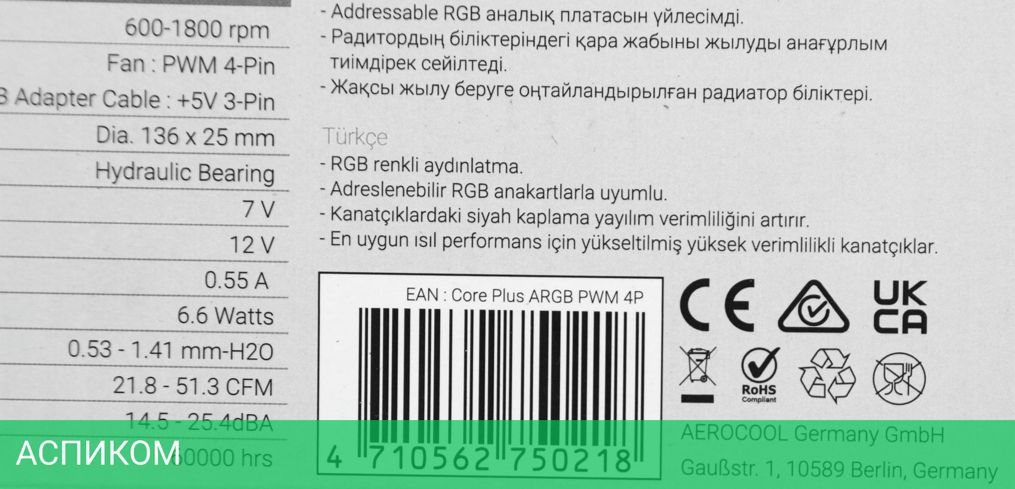 Максимальный воздушный поток (CFM)