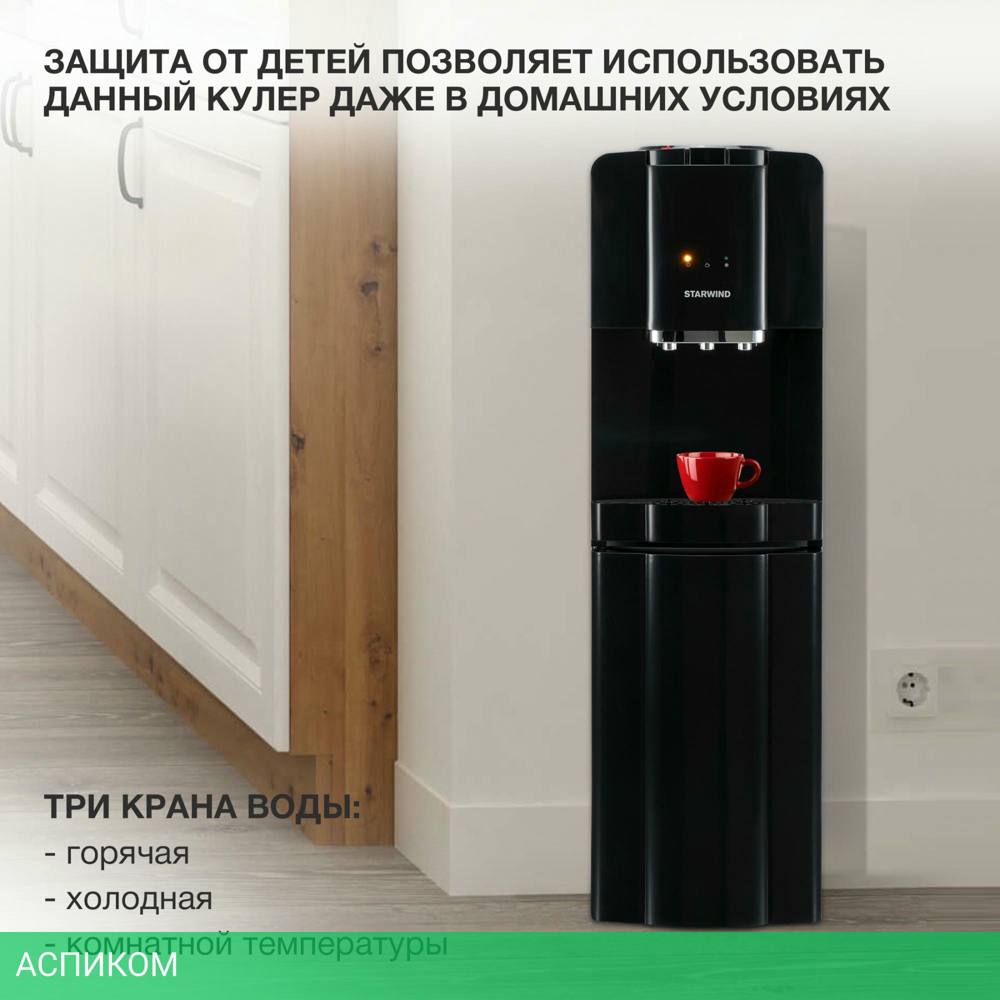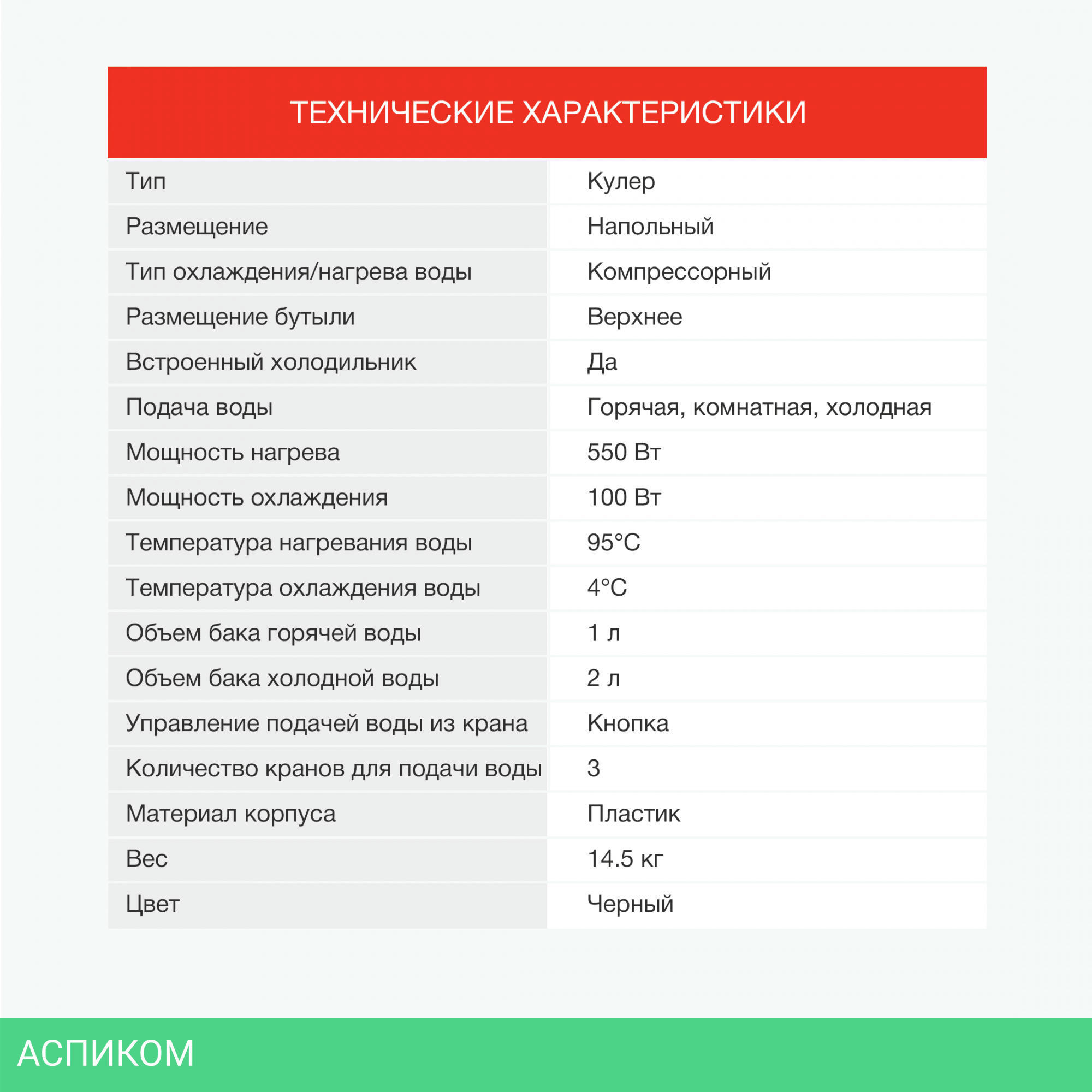 кулер для воды / черный / напольный / компрессорное / бутыль сверху / кнопка / да / да / нет / нет