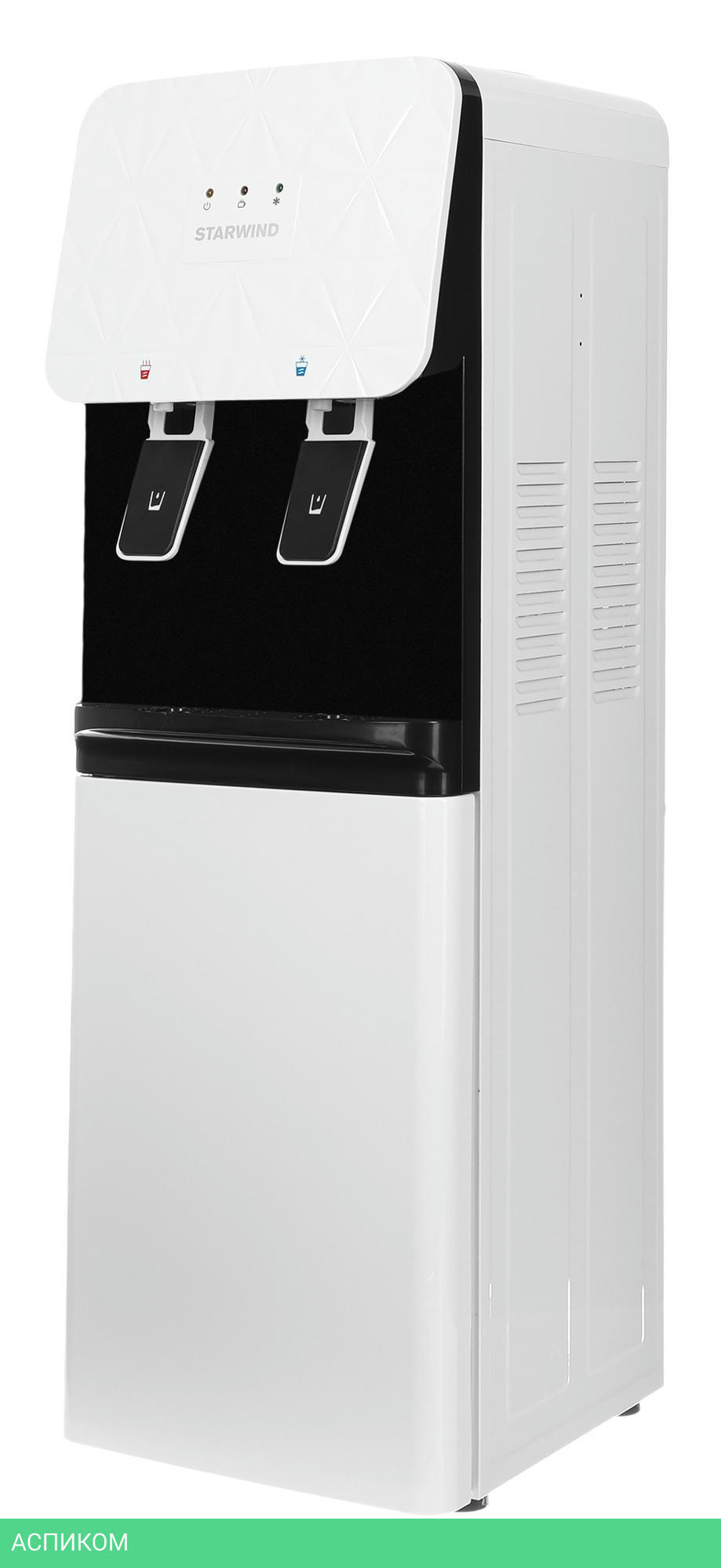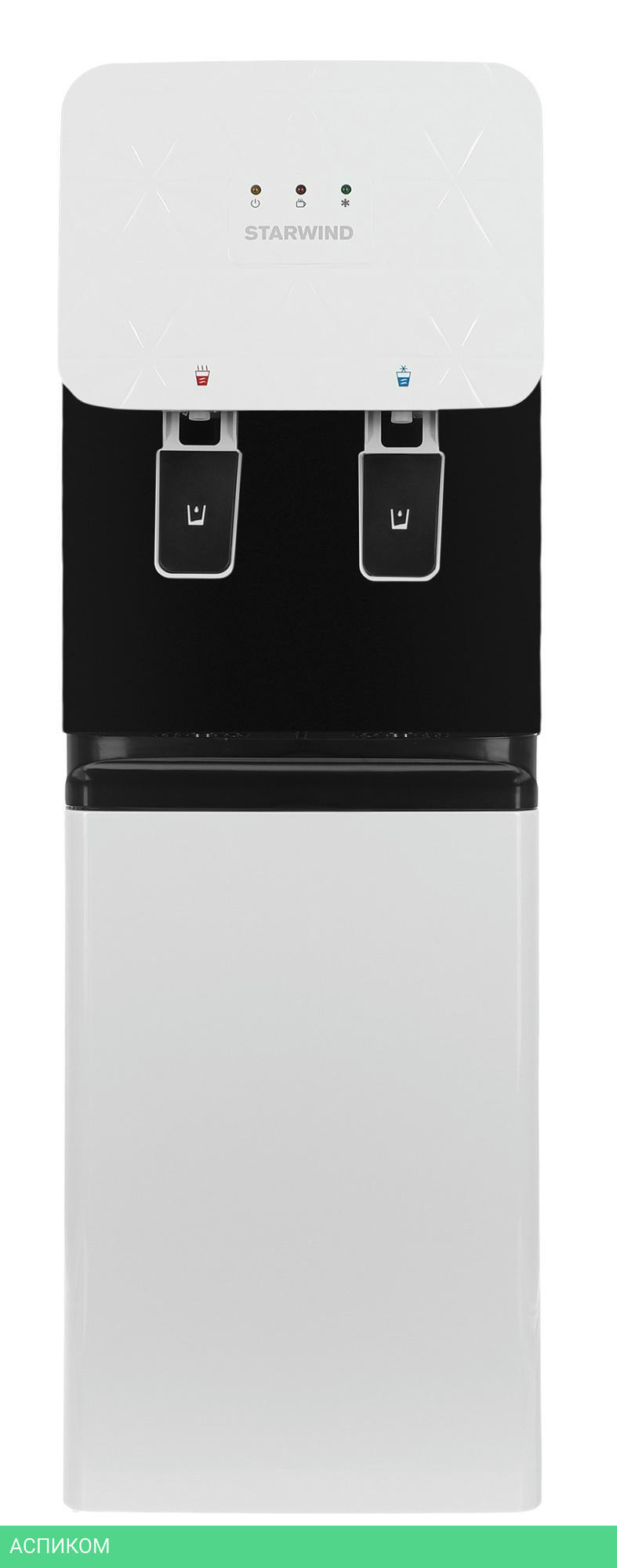 кулер для воды / напольный / электронное / бутыль сверху / нажим кружкой / да / нет / нет / нет / белый; черный