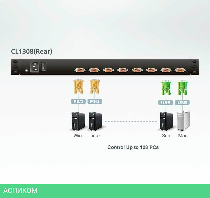 KVM переключатель / для компьютера; для av-аппаратуры / передача данных; передача видео / VGA