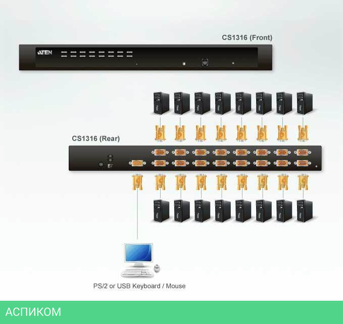 KVM переключатель / для компьютера; для av-аппаратуры / передача данных; передача видео; передача аудио / USB 2.0 Type-A; PS/2