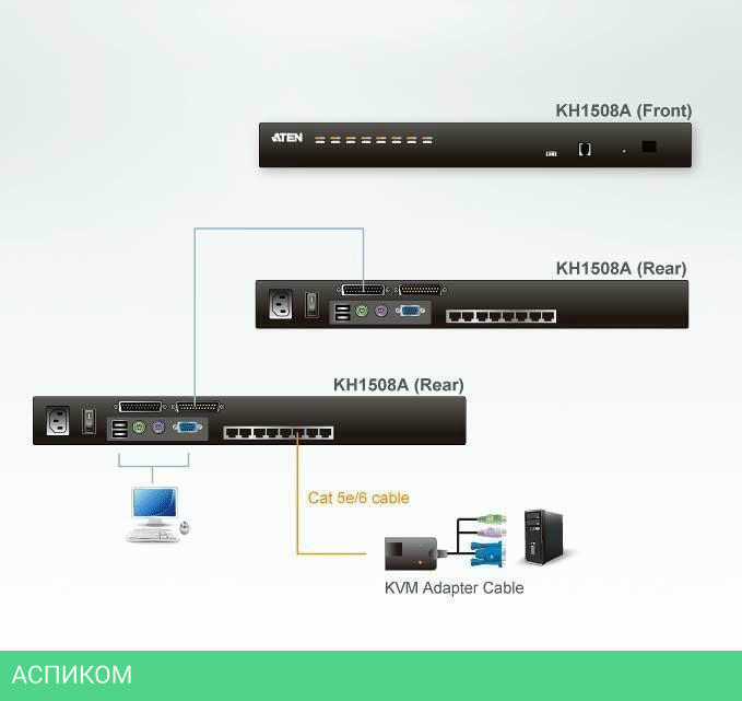 KVM переключатель / для компьютера / передача данных; передача видео / USB 2.0 Type-A; VGA; PS/2; RJ45