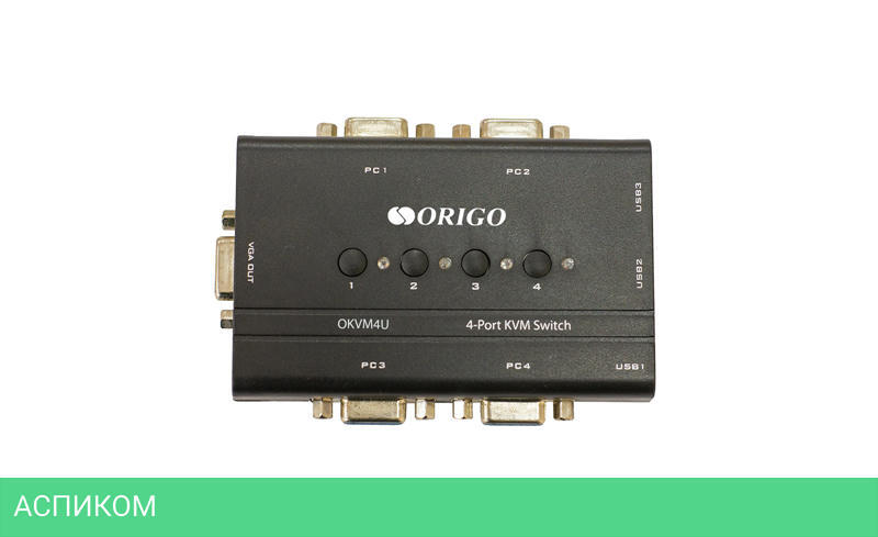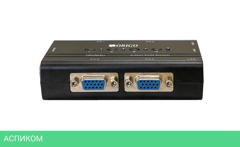 KVM-переключатель OKVM4U; 2 KVM-кабеля с разъемами VGA и USB, 1,8 м; Краткое руководство по установке
