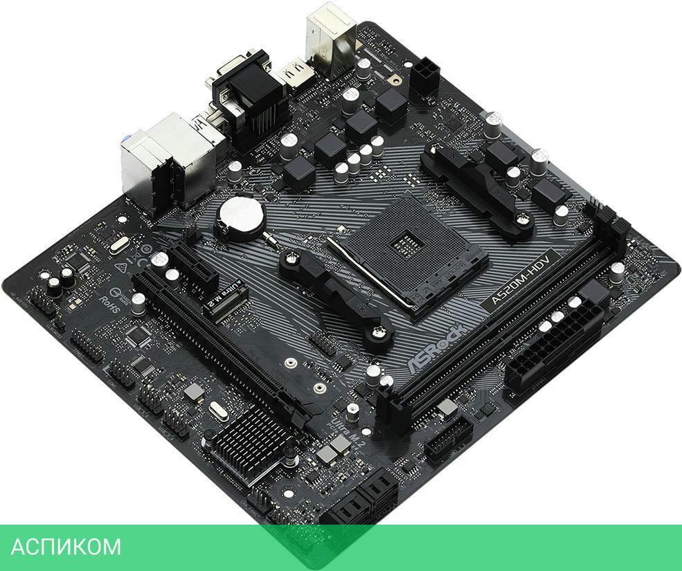 Материнская плата ASRock A520M-HDV DDR4/AM4/mATX/AMD A520/2xDDR4/1xM.2/Realtek ALC887/3x3.5 мм jack/RAID/1xHDMI/1xVGA (D-Sub)/1xDVI-D/1xCOM (внутр.)/1xPS/2