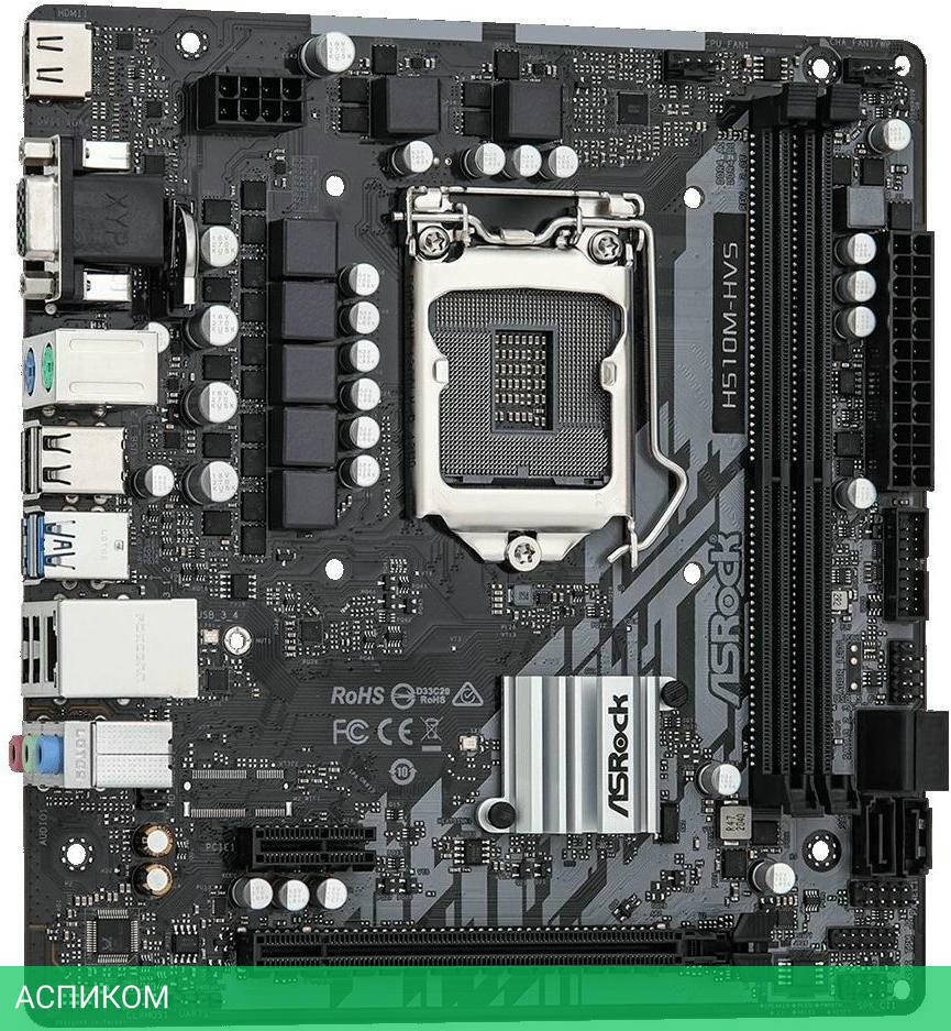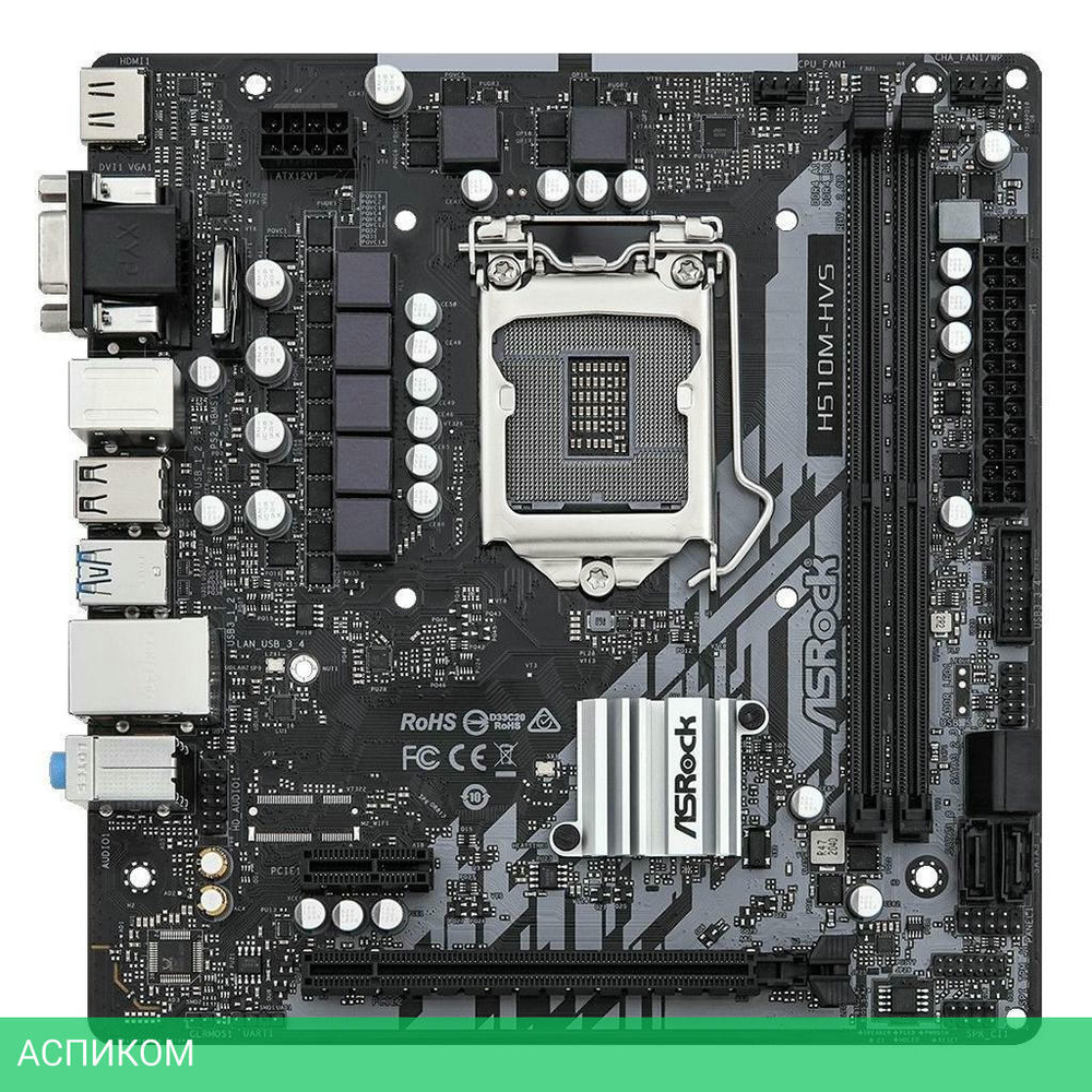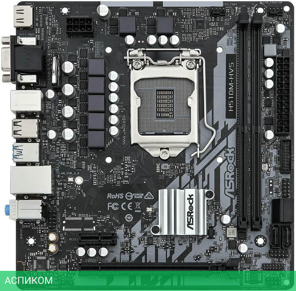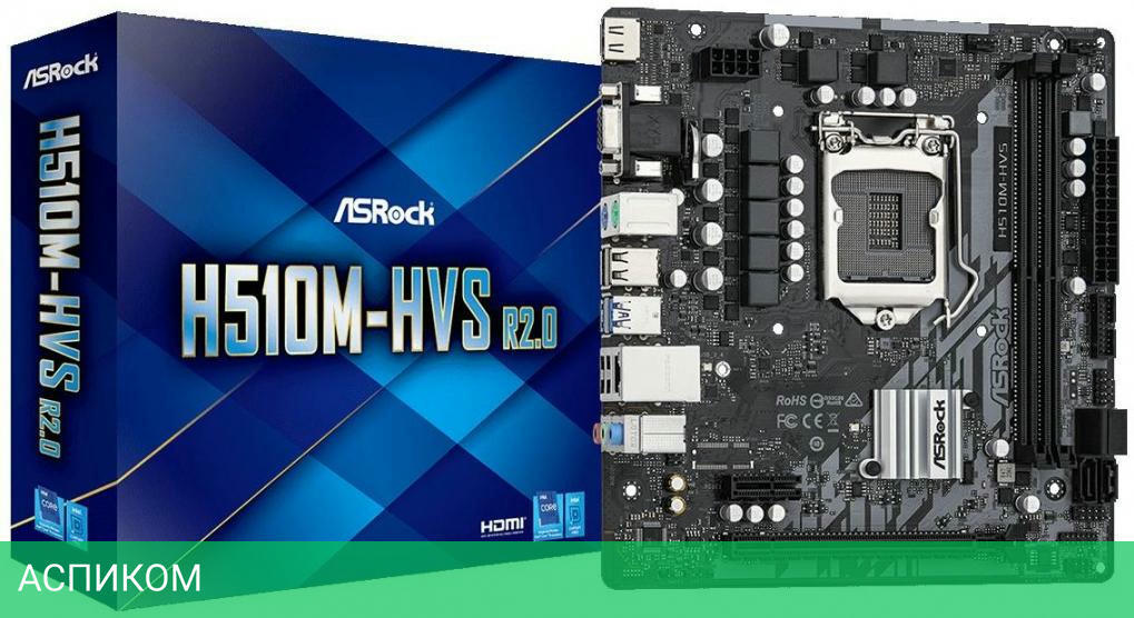 Материнская плата ASRock H510M-HVS R2.0 DDR4/LGA1200/mATX/Intel H510/2xDDR4/4xSATA 3.0/Realtek ALC897/3x3.5 мм jack/1xHDMI/1xVGA (D-Sub)