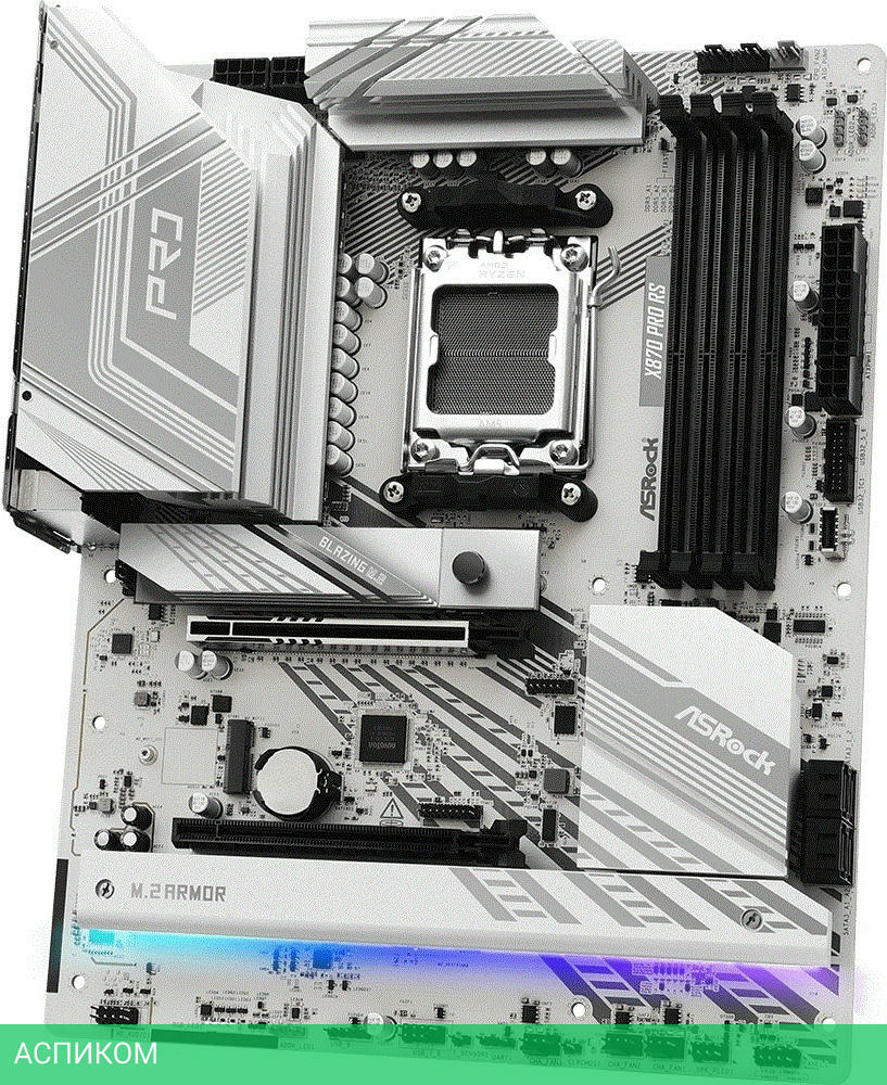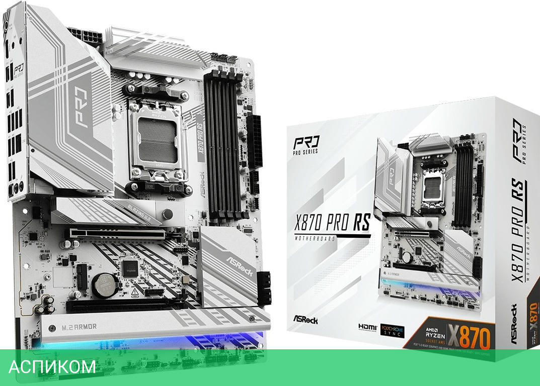 Материнская плата ASRock X870 Pro RS/AM5/ATX/AMD X870/4xDDR5/2xSATA 3.0/3xM.2/Realtek ALC1220/8 каналов (7.1)/2x3.5 мм jack/1x2.5 Gigabit/RAID/9x USB 2.0/6x USB 3.2 Gen1 Type-A (+2 внутренних)/1x USB 3.2 Gen 2x2/2x USB4/1x PCIe x16 (1x PCIe 5.0 x16)/1xHDMI