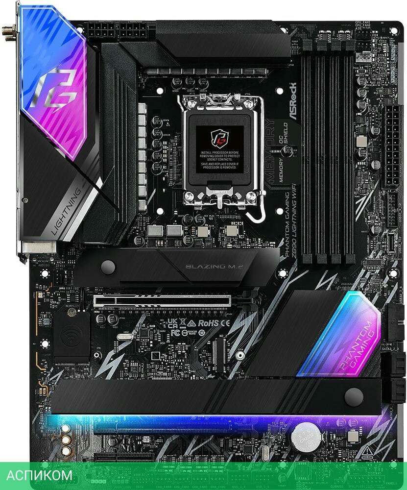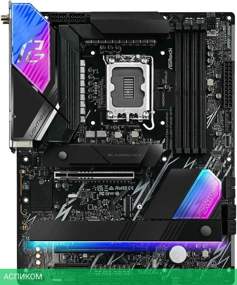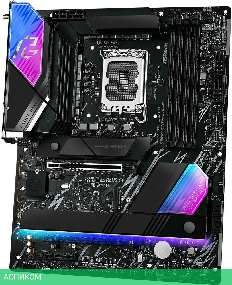 Материнская плата ASRock Z890 Lightning WiFi/LGA1851/ATX/Intel Z890/4xDDR5/4xSATA 3.0/4xM.2/Realtek ALC1220/8 каналов (7.1)/5x3.5 мм jack/1x2.5 Gigabit/RAID/2x USB 2.0 (+4 внутренних)/4x USB 3.2 Gen1 Type-A (+4 внутренних)/2x USB 3.2 Gen2 Type-A/1x USB 3.2 Gen 2x2 (внутренних)/2x USB-C (Thunderbolt 4)/2x PCIe x16 (1x PCIe 5.0 x16, 1x PCIe 4.0 x4)/1x PCIe x4 (1x PCIe 4.0 x4)/1xHDMI/BT, WiFi/1хWIFI slot