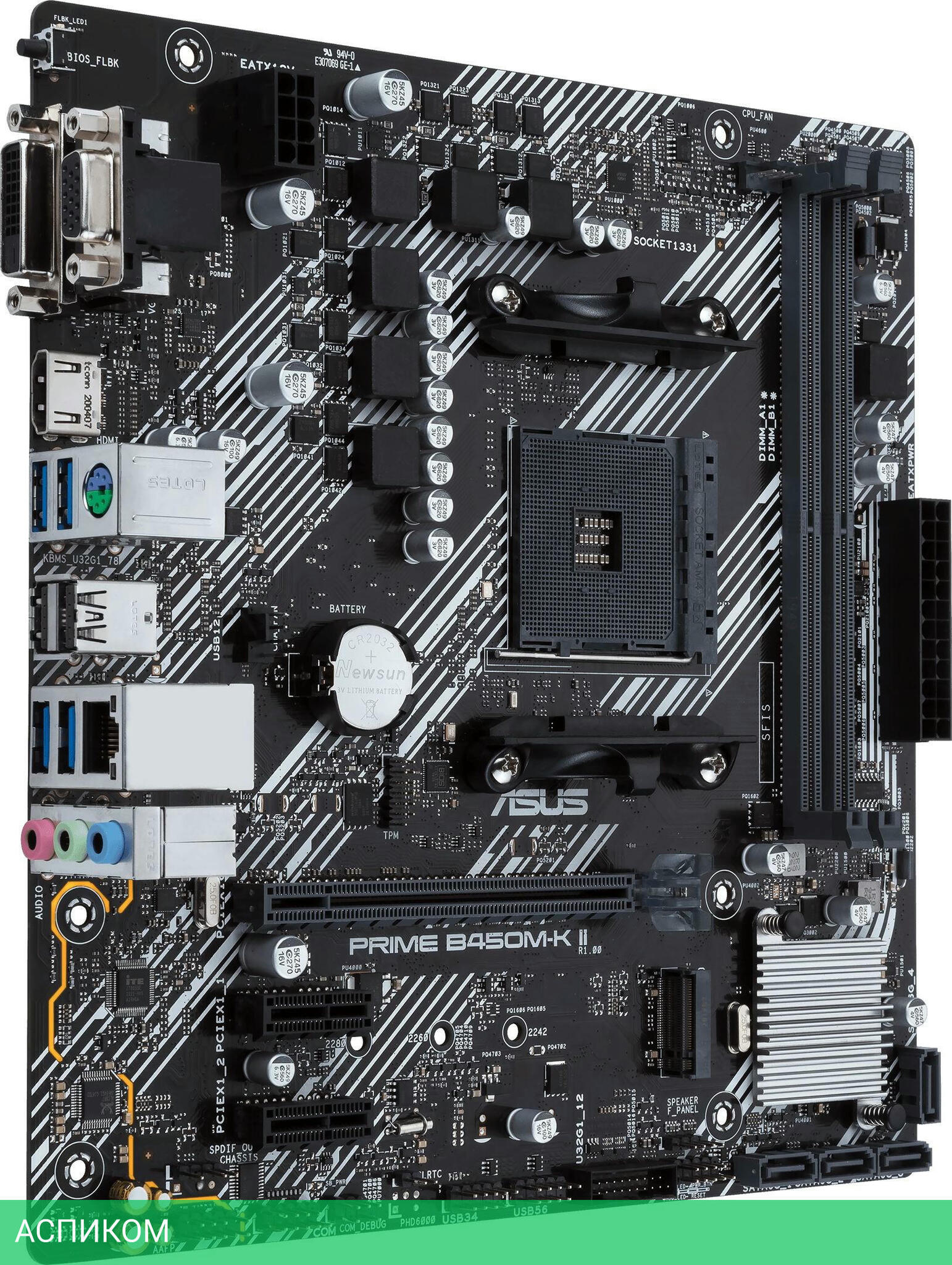Материнская плата ASUS Prime B450M-K II DDR4/AM4/mATX/AMD B450/2xDDR4/4xSATA 3.0/1xM.2/Realtek ALC887/3x3.5 мм jack/RAID/1xHDMI