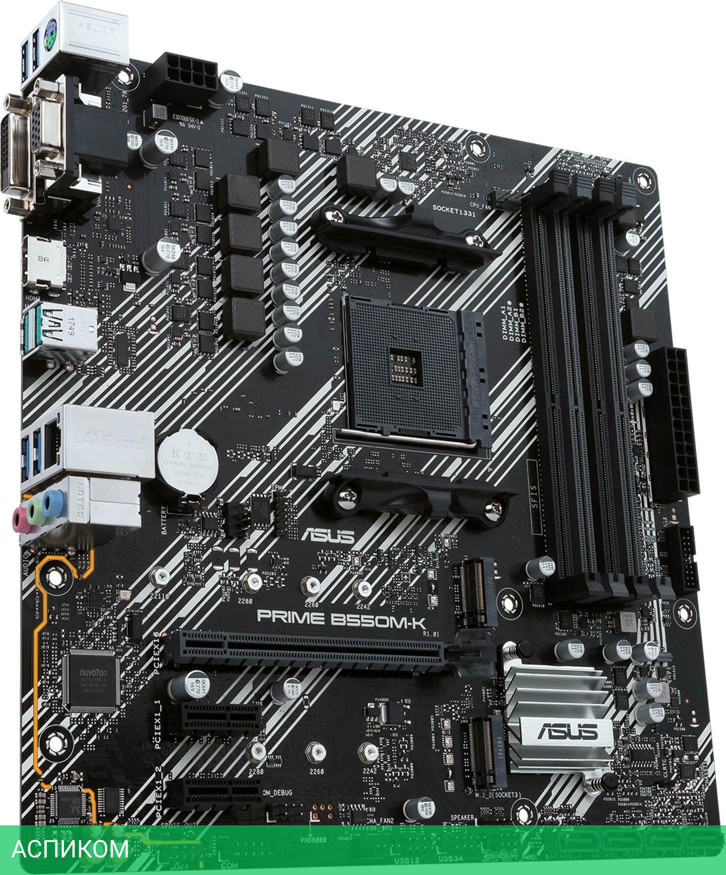Материнская плата ASUS Prime B550M-K DDR4/AM4/mATX/AMD B550/4xDDR4/4xSATA 3.0/Realtek ALC887/3x3.5 мм jack/RAID/1xHDMI/1xVGA (D-Sub)/1xDVI-D/1xCOM (внутр.)