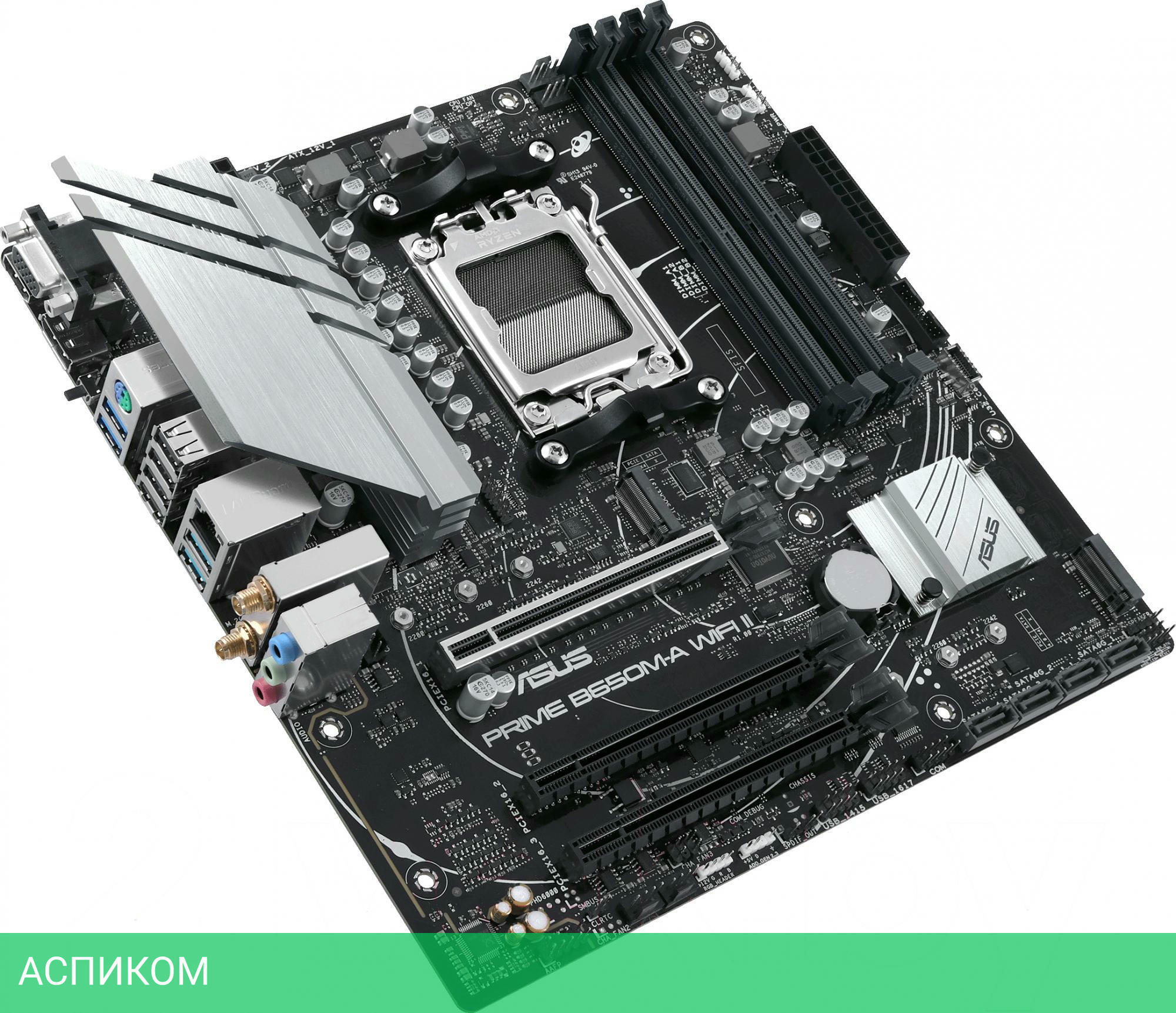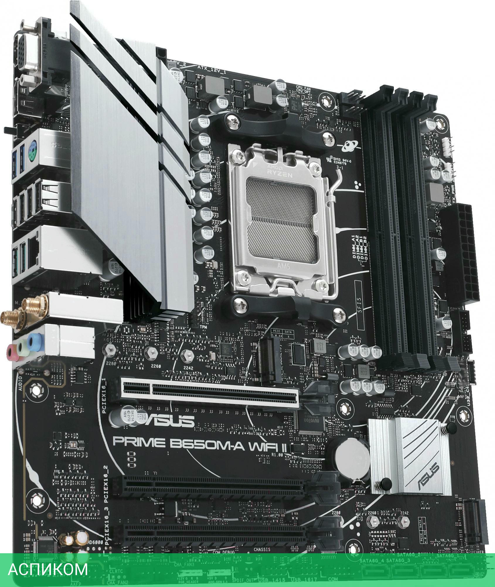 Материнская плата ASUS Prime B650M-A WiFi II (90MB1EG0-M0EAY0)/AM5/mATX/AMD B650/4xDDR5/4xSATA 3.0/2xM.2/8 каналов (7.1)/3x3.5 мм jack/1xDP/1x2.5 Gigabit/RAID/4x USB 2.0 (+2 внутренних)/2x USB 3.2 Gen1 Type-A (+1 внутренних)/2x USB 3.2 Gen2 Type-A/1x USB 3.2 Gen1 Type-C/3x PCIe x16 (1x PCIe 4.0 x16, 2x PCIe 4.0 x1)/1xHDMI/BT, WiFi/1хWIFI slot/1xVGA (D-Sub)/1xCOM (внутр.)/1xPS/2