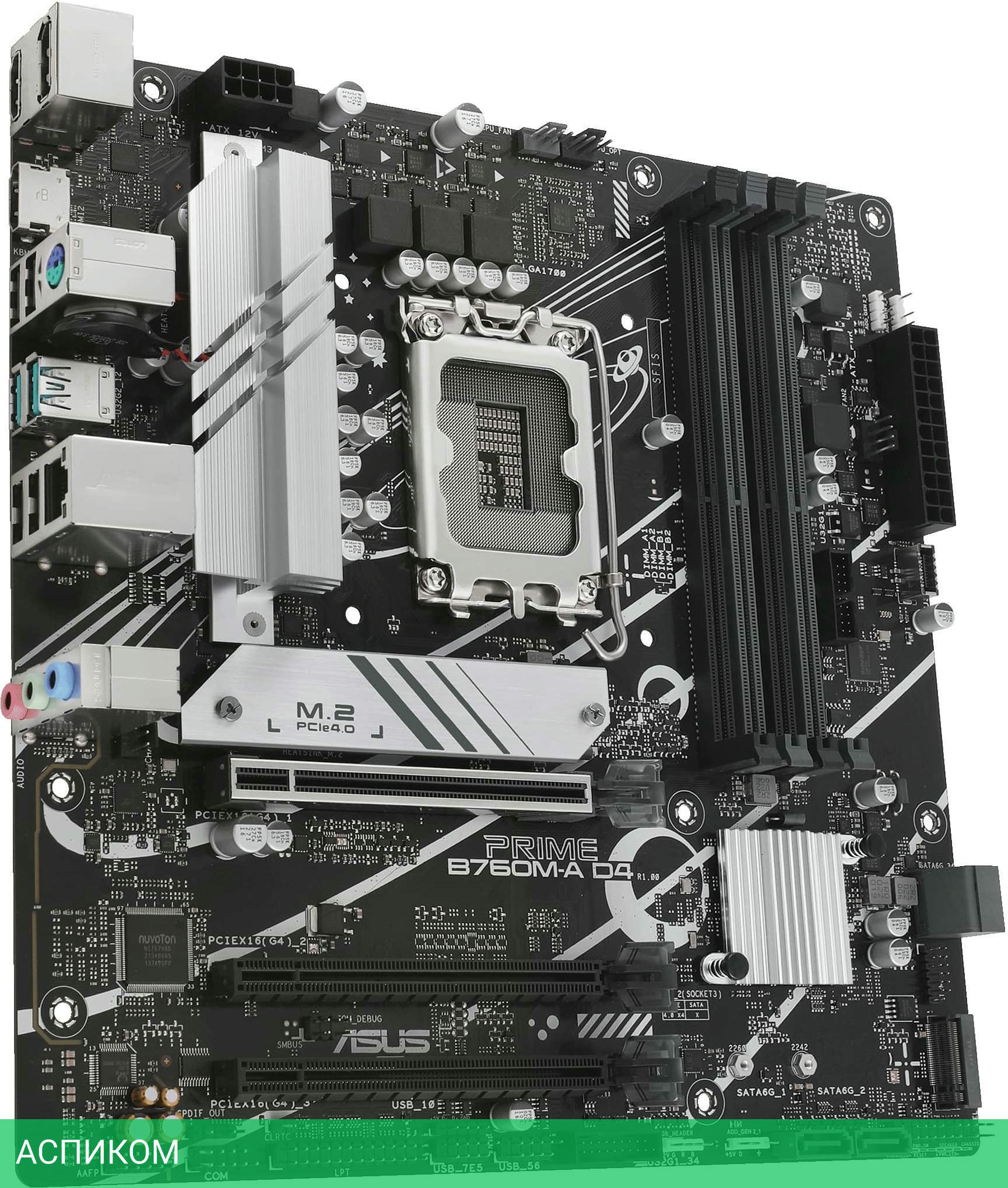 Материнская плата ASUS Prime B760M-A D4-CSM (90MB1D00-M1EAYC)/LGA1700/mATX/Intel B760/4xDDR4/4xSATA 3.0/2xM.2/8 каналов (7.1)/3x3.5 мм jack/1xDP/1x2.5 Gigabit/RAID/4x USB 2.0 (+3 внутренних)/2x USB 3.2 Gen1 Type-A (внутренних)/2x USB 3.2 Gen2 Type-A/1x USB 3.2 Gen1 Type-C (внутренних)/3x PCIe x16 (1x PCIe 4.0 x16, 1x PCIe 4.0 x4, 1x PCIe 4.0 x1)/2xHDMI/1xCOM (внутр.)/1xLPT (внутр.)/1xPS/2
