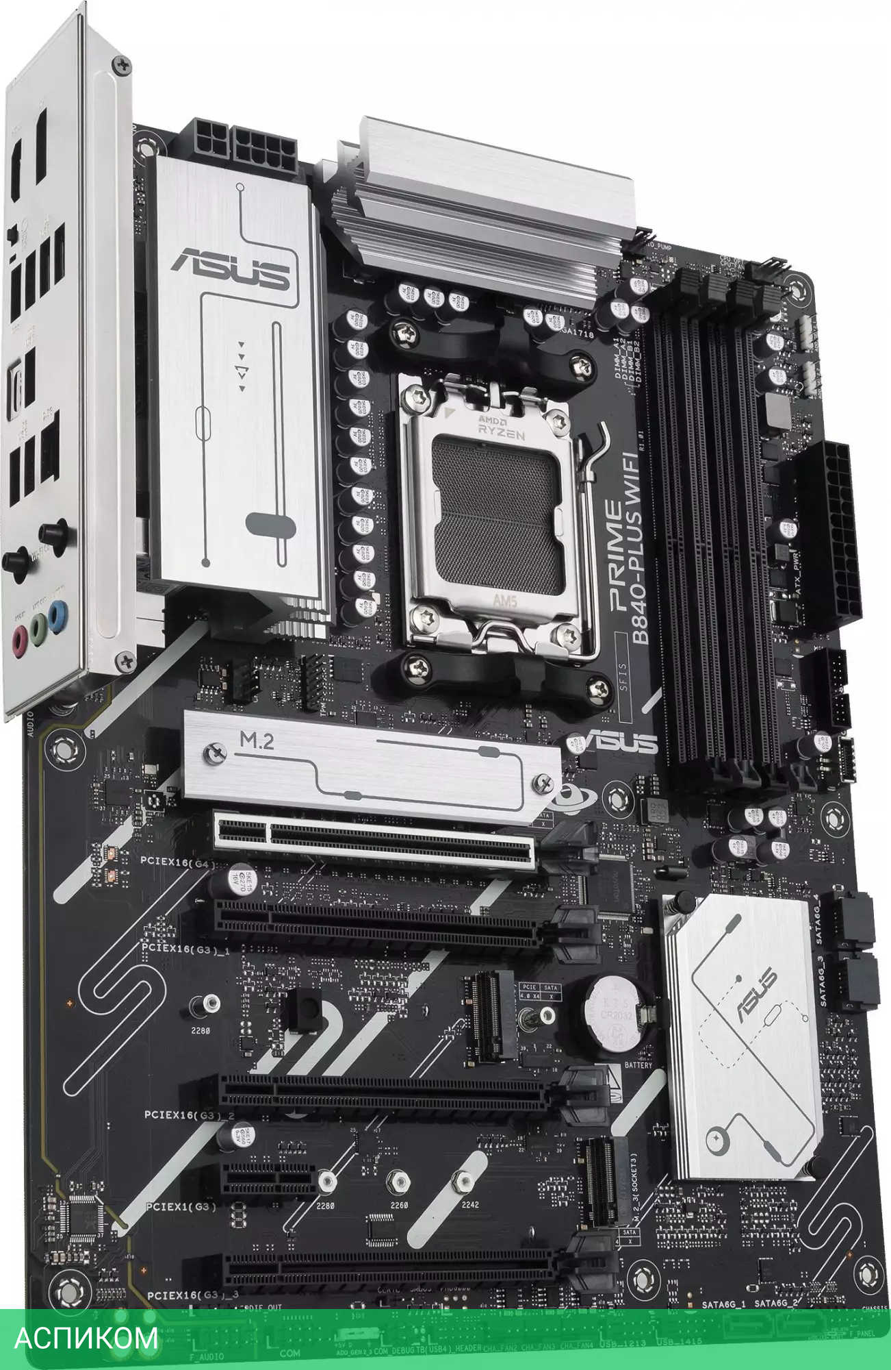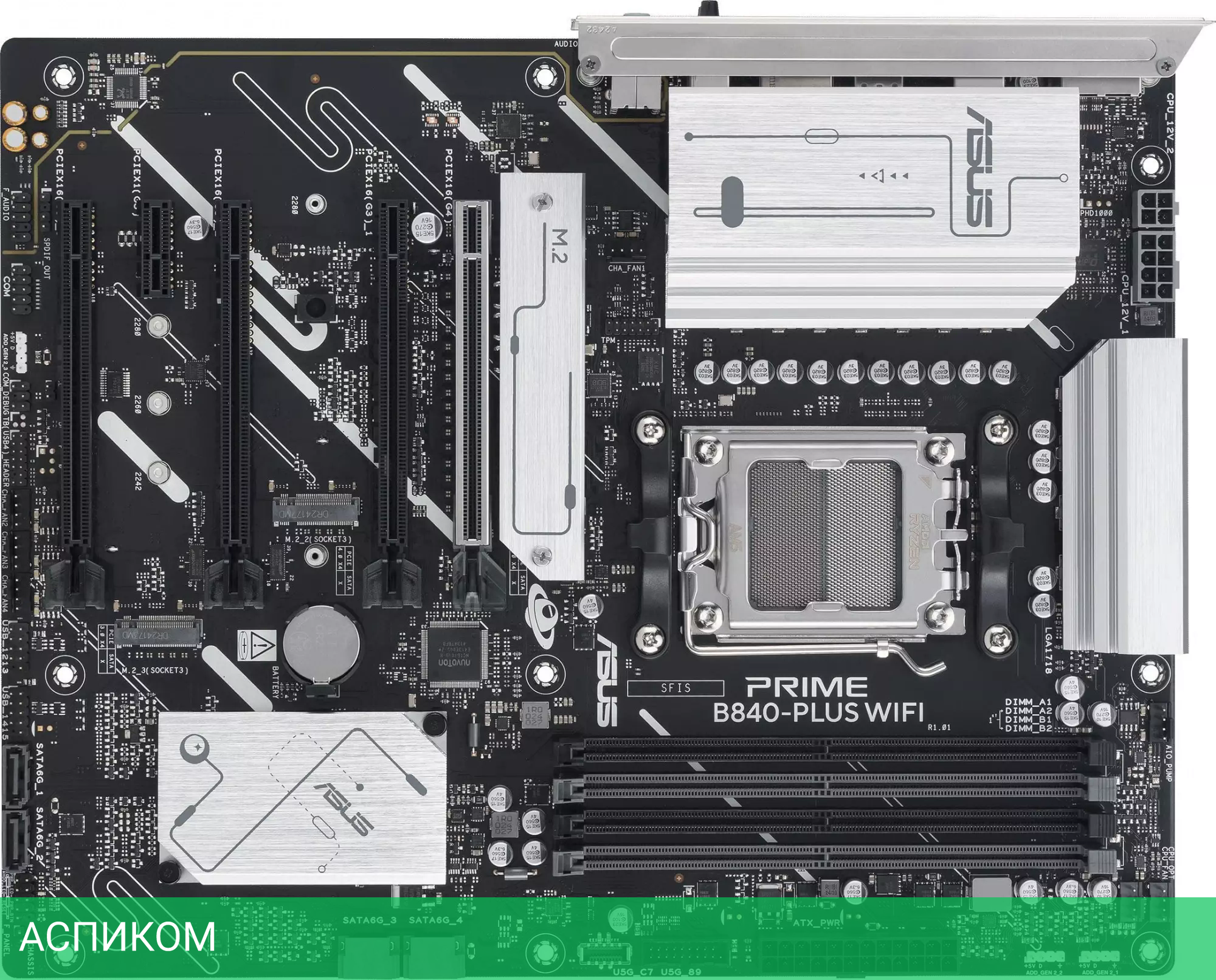 Материнская плата Asus Prime B840-Plus WIFI (90MB1IZ0-M0EAY0)/AM5/ATX/AMD B840/4xDDR5/4xSATA 3.0/2xM.2/8 каналов (7.1)/3x3.5 мм jack/1xDP/1x2.5 Gigabit/RAID/4x USB 2.0 (+2 внутренних)/2x USB 3.2 Gen1 Type-A (+1 внутренних)/1x USB 3.2 Gen2 Type-A/1x USB 3.2 Gen1 Type-C (внутренних)/1x USB 3.2 Gen2 Type-C/4x PCIe x16/1x PCIe x1/1xHDMI/BT, WiFi/1xCOM (внутр.)