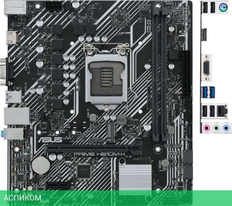 Материнская плата ASUS Prime H510M-K DDR4/LGA1200/mATX/Intel H510/2xDDR4/4xSATA 3.0/1xM.2/Realtek ALC887/3x3.5 мм jack/1xHDMI
