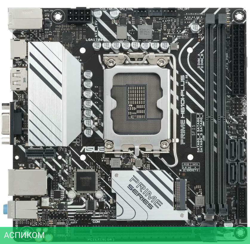 Материнская плата ASUS Prime H610I-Plus-CSM (90MB1GB0-M0EAYC)/LGA1700/Mini-ITX/Intel B610/2xDDR5/4xSATA 3.0/1xM.2/8 каналов (7.1)/3x3.5 мм jack/1xDP/1x1 Gigabit/2x USB 2.0 (+1 внутренний)/2x USB 3.2 Gen1 Type-A (+1 внутренних)/1x PCIe x16 (1x PCIe 4.0 x16)/1xHDMI/1хWIFI slot/1xVGA (D-Sub)/1xCOM (внутр.)/1xPS/2
