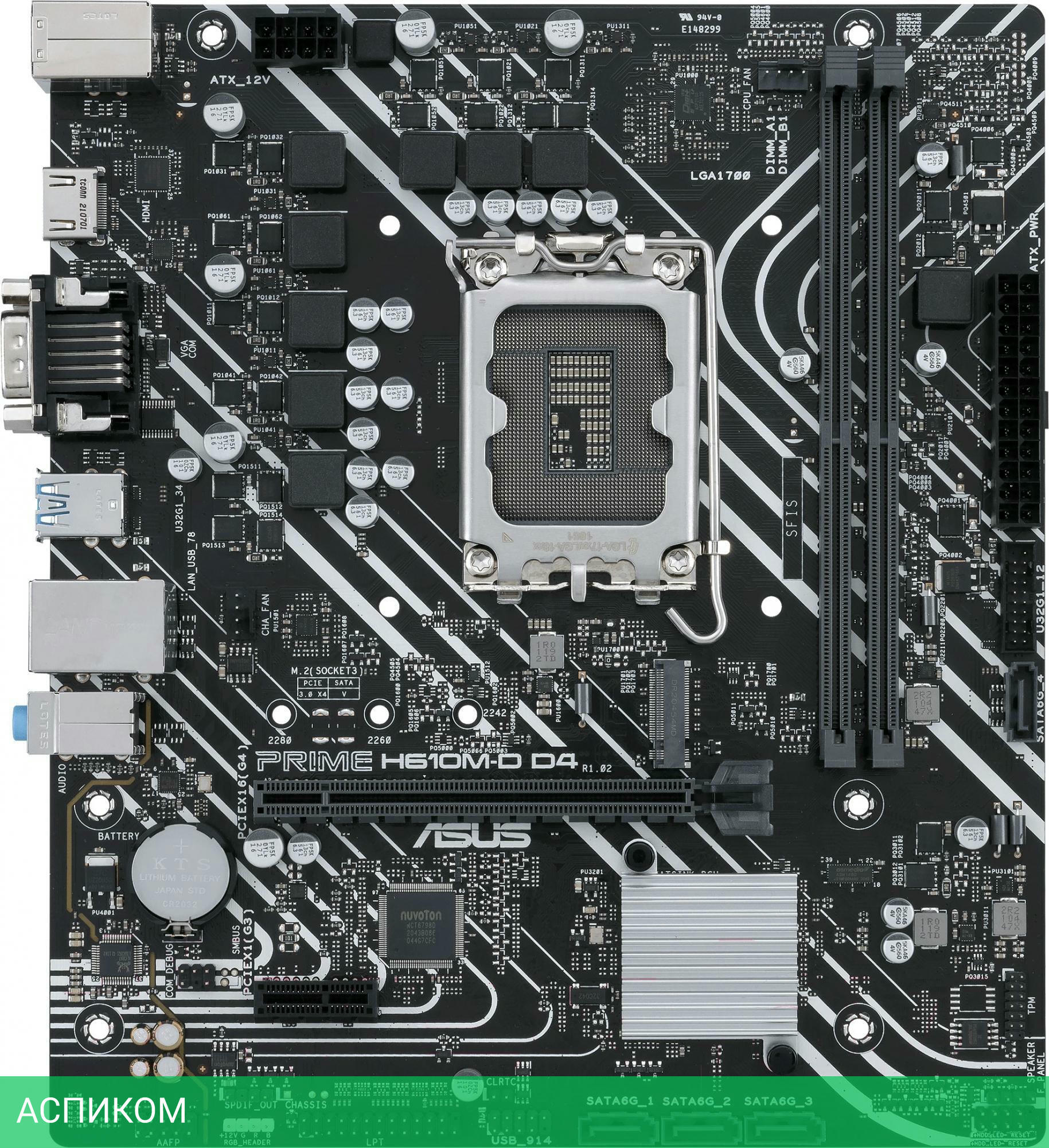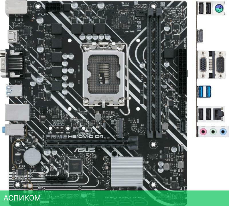 Материнская плата ASUS Prime H610M-D D4 DDR4/LGA1700/mATX/Intel H610/2xDDR4/4xSATA 3.0/1xM.2/3x3.5 мм jack/1xHDMI/1xVGA (D-Sub)/1xLPT (внутр.)/1xPS/2