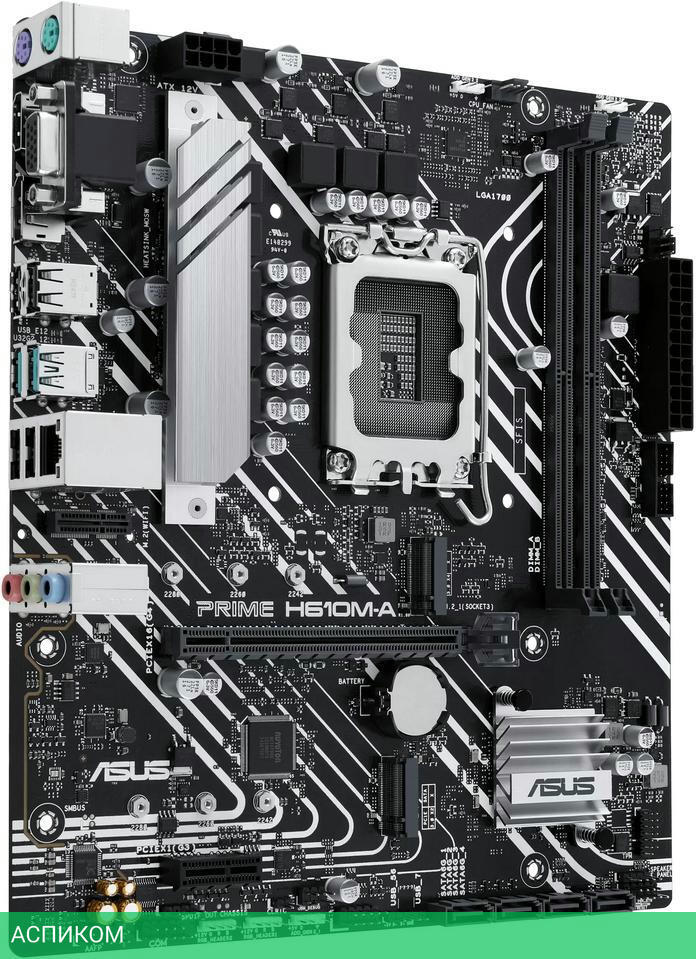 Материнская плата ASUS Prime H610M-E-CSM (90MB1G10-M0EAYC)/LGA1700/mATX/Intel H610/2xDDR5/4xSATA 3.0/2xM.2/8 каналов (7.1)/3x3.5 мм jack/1xDP/1x1 Gigabit/2x USB 2.0 (+2 внутренних)/2x USB 3.2 Gen1 Type-A (+1 внутренних)/1x PCIe x16 (1x PCIe 4.0 x16)/1x PCIe x1 (1x PCIe 3.0 x1)/1xHDMI/1xVGA (D-SUB)/1xCOM (внутр.)/2xPS/2