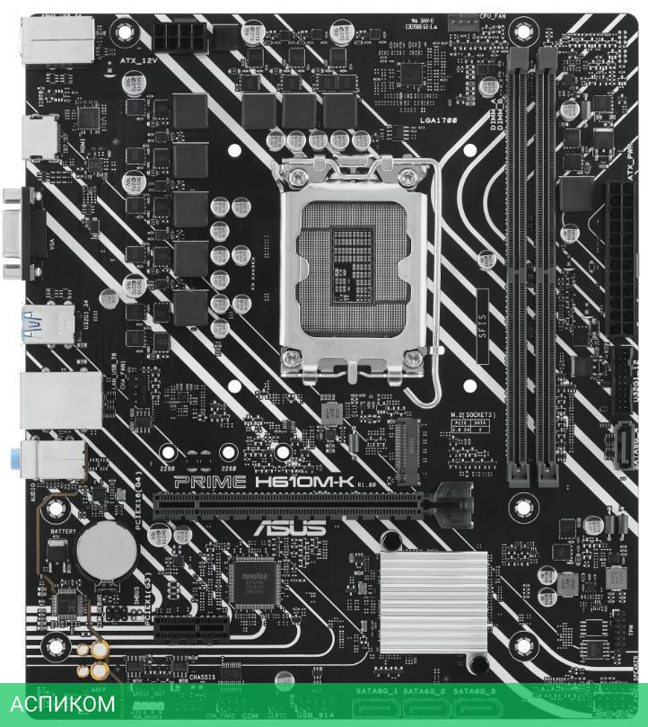 Материнская плата ASUS Prime H610M-K (90MB1GA0-M0EAY0)/LGA1700/mATX/Intel H610/2xDDR5/4xSATA 3.0/1xM.2/8 каналов (7.1)/3x3.5 мм jack/1x1 Gigabit/4x USB 2.0 (+1 внутренний)/2x USB 3.2 Gen1 Type-A (+1 внутренних)/1x PCIe x16 (1x PCIe 4.0 x16)/1x PCIe x1 (1x PCIe 3.0 x1)/1xHDMI/1xVGA (D-Sub)/1xCOM (внутр.)/1xPS/2