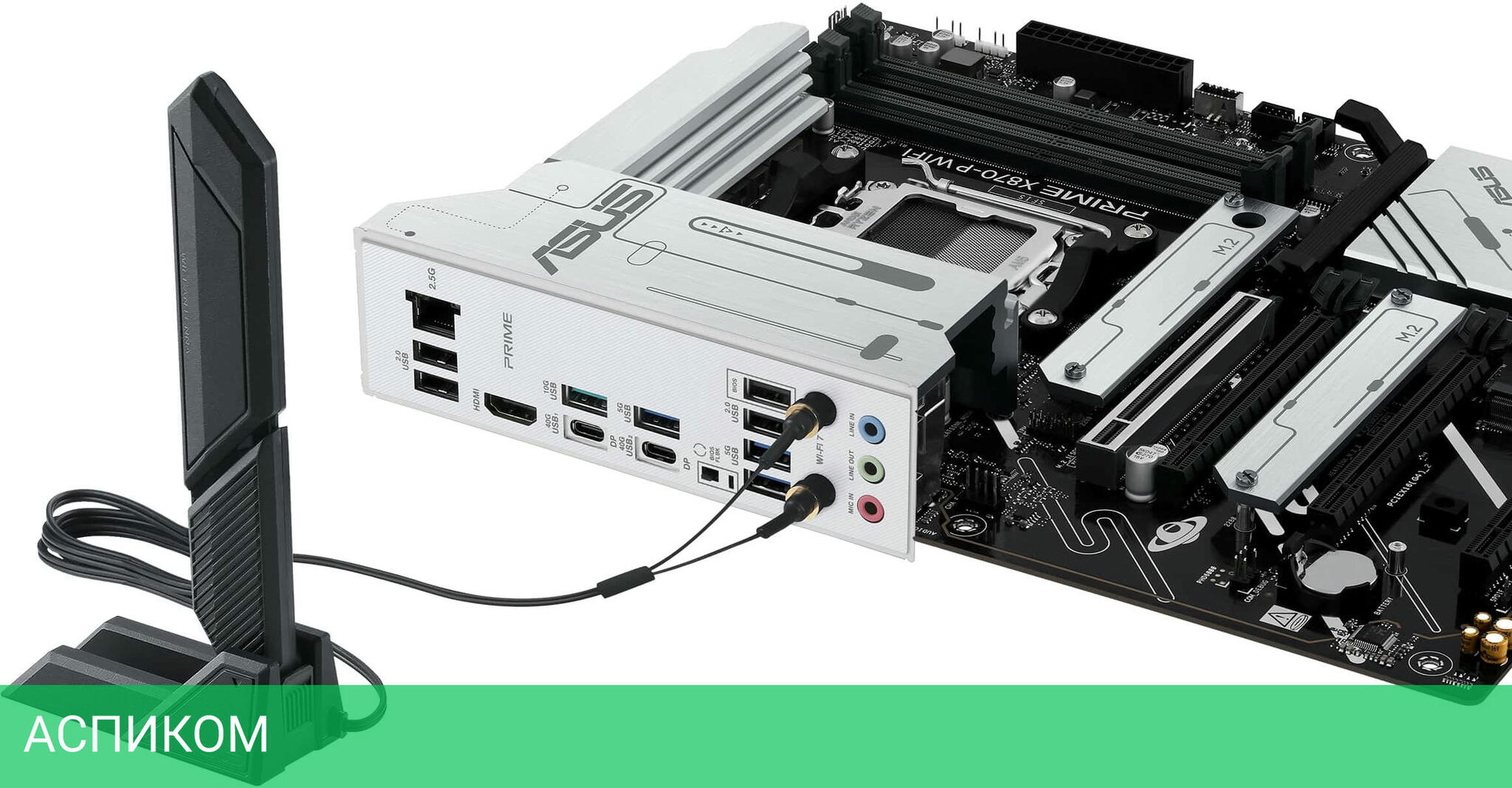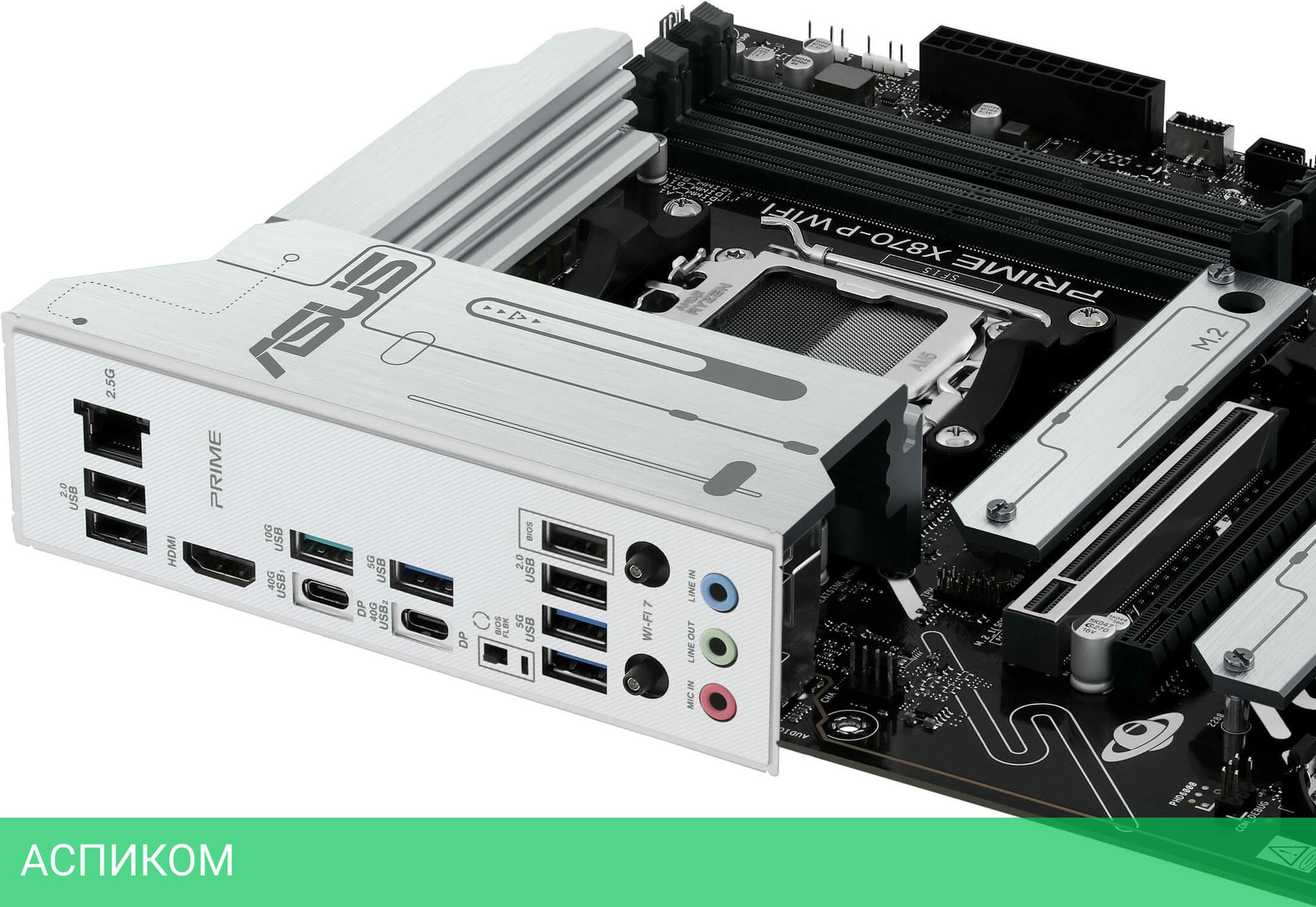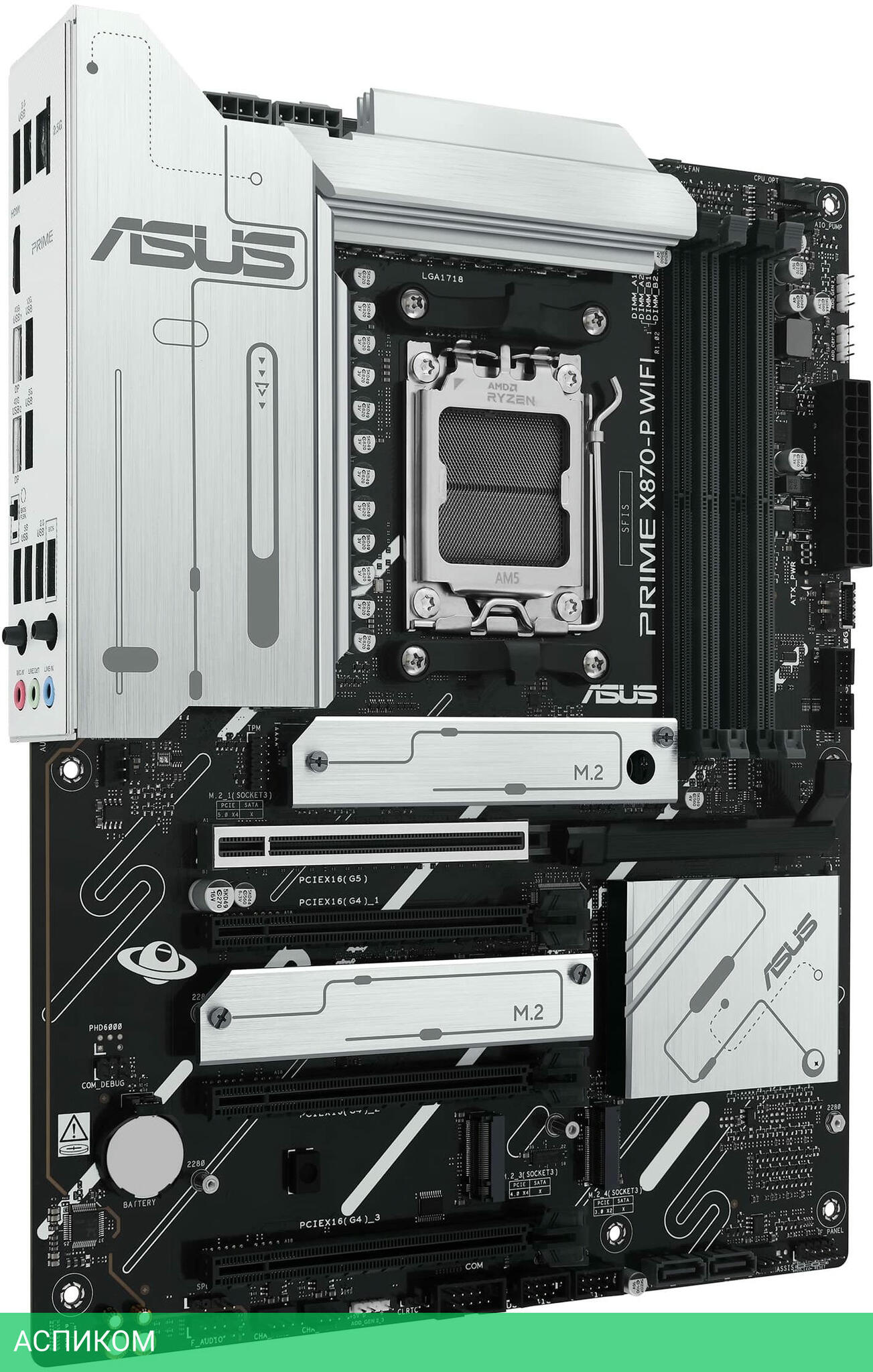 Материнская плата ASUS Prime X870-P WiFi (90MB1IS0-M0EAY0)/AM5/ATX/AMD X870/4xDDR5/2xSATA 3.0/4xM.2/8 каналов (7.1)/3x3.5 мм jack/1x2.5 Gigabit/RAID/4x USB 2.0 (+2 внутренних)/3x USB 3.2 Gen1 Type-A (+1 внутренних)/1x USB 3.2 Gen2 Type-A/1x USB 3.2 Gen2 Type-C (внутренних)/2x USB4/4x PCIe x16 (1x PCIe 5.0 x16, 3x PCIe 4.0 x1)/1xHDMI/BT, WiFi/1хWIFI slot/1xCOM (внутр.)
