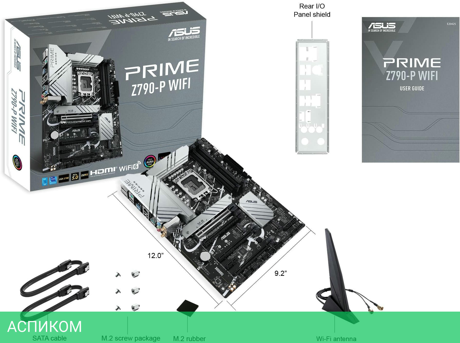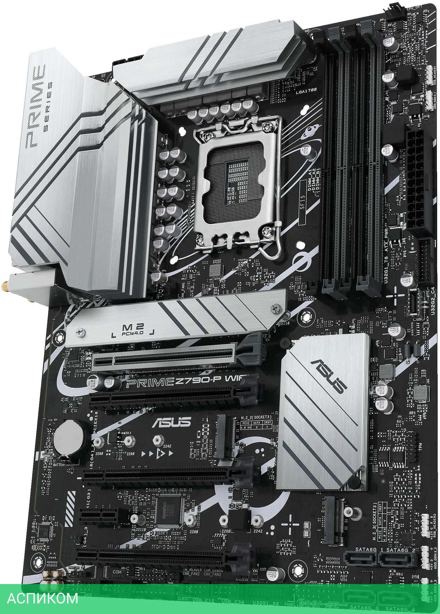 Материнская плата ASUS Prime Z790-P WiFi (90MB1CJ0-M1EAY0)/LGA1700/ATX/Intel Z790/4xDDR5/4xSATA 3.0/3xM.2/8 каналов (7.1)/3x3.5 мм jack/1xDP/1x2.5 Gigabit/RAID/4x USB 2.0 (+2 внутренних)/2x USB 3.2 Gen1 Type-A (+2 внутренних)/1x USB 3.2 Gen2 Type-A/1x USB 3.2 Gen2 Type-C (внутренних)/1x USB 3.2 Gen 2x2/4x PCIe x16 (1x PCIe 5.0 x16, 3x PCIe 4.0 x4)/1x PCIe x1 (1x PCIe 3.0 x1)/1xHDMI/BT, WiFi/1xCOM (внутр.)/1xPS/2
