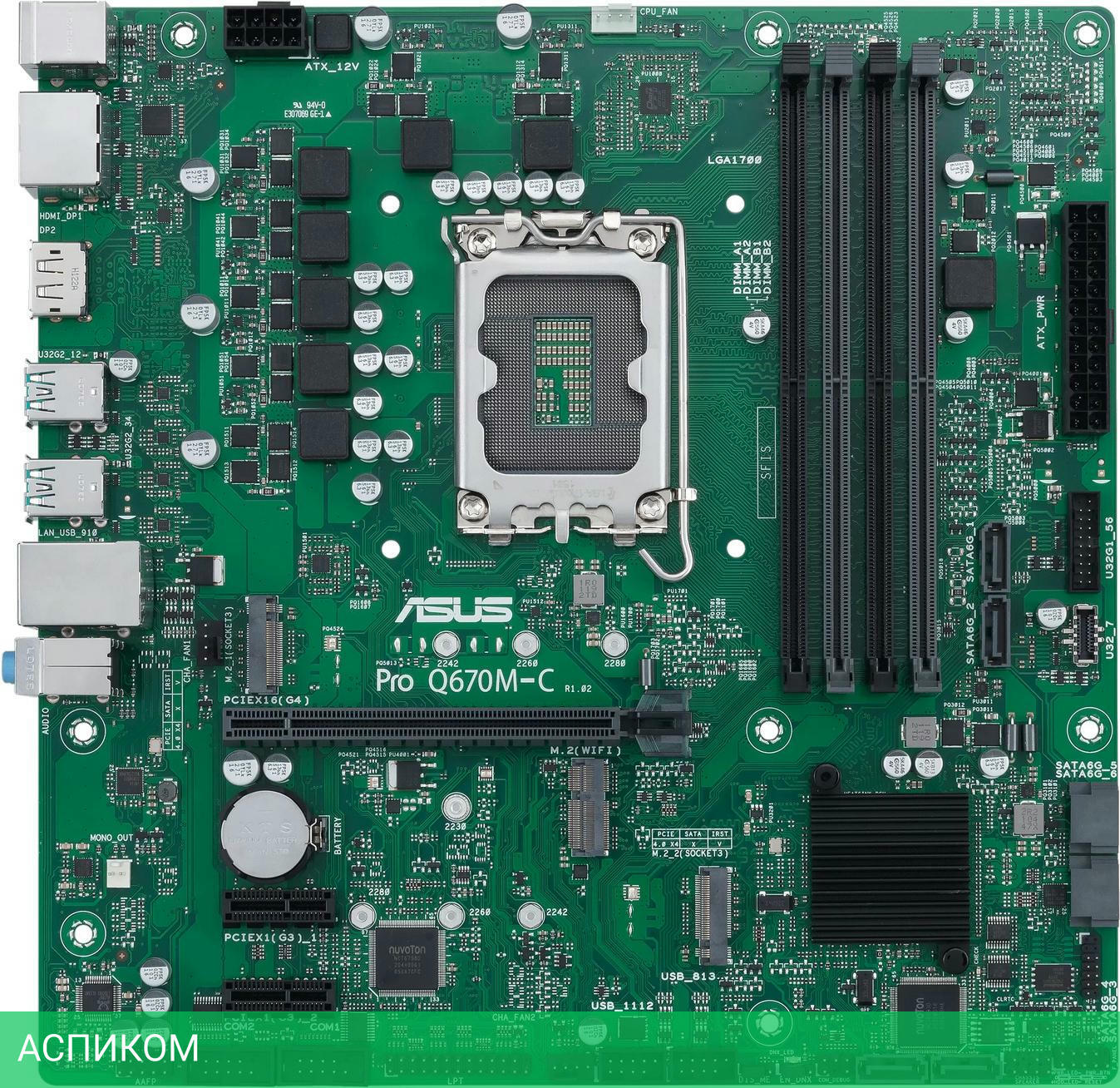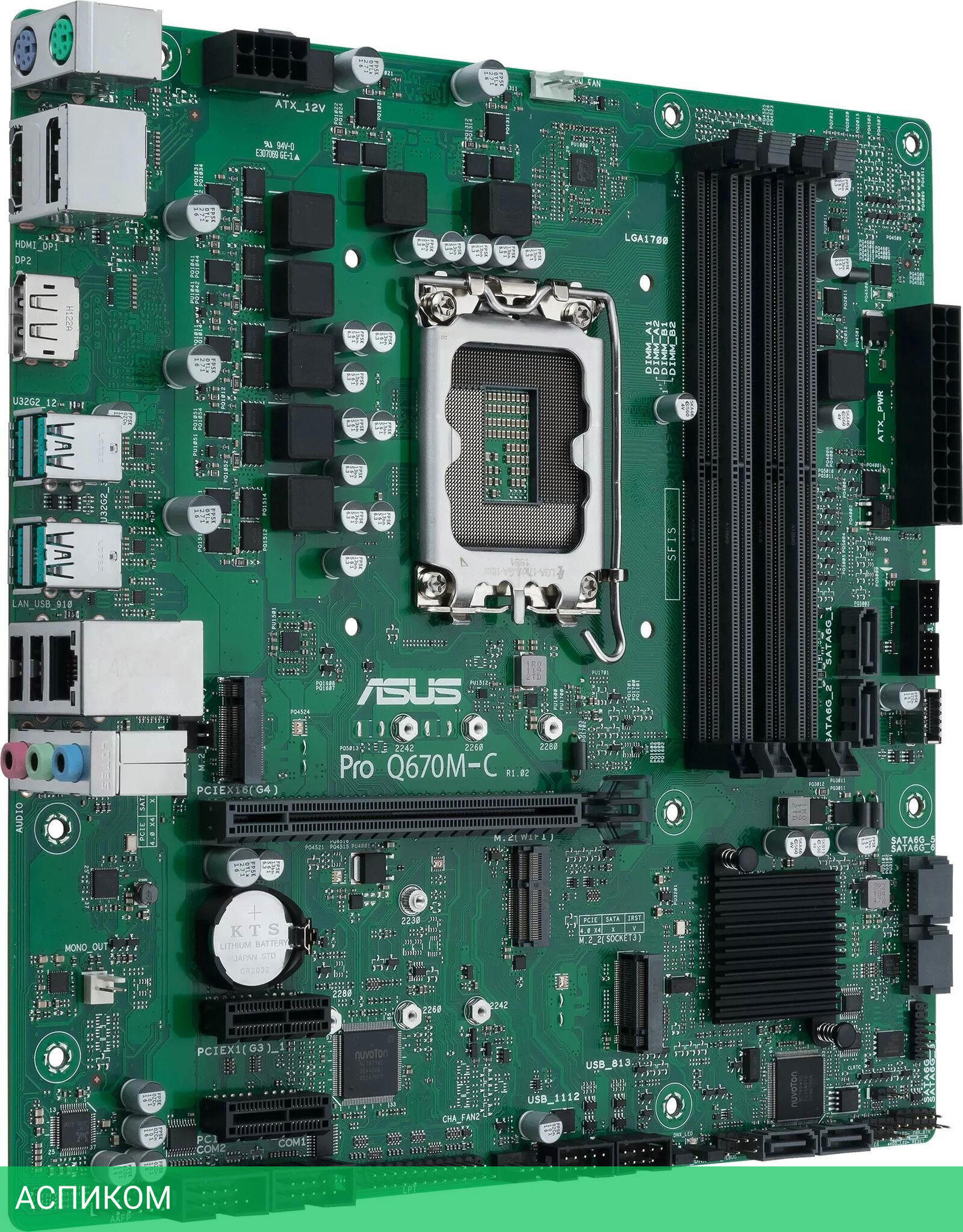 Материнская плата ASUS Pro Q670M-C-CSM (90MB19E0-M0EAYC)/LGA1700/mATX/Intel Q670/4xDDR5/6xSATA 3.0/2xM.2/8 каналов (7.1)/3x3.5 мм jack/2xDP/1x1 Gigabit/RAID/2x USB 2.0 (+2 внутренних)/1x USB 3.2 Gen1 Type-A (внутренних)/4x USB 3.2 Gen2 Type-A/1x USB 3.2 Gen1 Type-C/1x PCIe x16 (1x PCIe 4.0 x16)/2x PCIe x1/1xHDMI/2xCOM (внеш.)