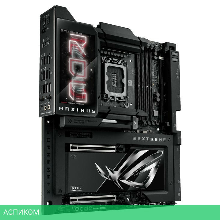 Материнская плата ASUS ROG MAXIMUS Z890 EXTREME (90MB1IA0-M0EAY0)/LGA1851/eATX/Intel Z890/4xDDR5/4xSATA 3.0/6xM.2/Realtek ALC4082/8 каналов (7.1)/2x3.5 мм jack/1x2.5 Gigabit, 1x10 Gigabit/RAID/2x USB 2.0 (внутренних)/2x USB 3.2 Gen1 Type-A (внутренних)/5x USB 3.2 Gen2 Type-A/2x USB 3.2 Gen2 Type-C (+1 внутренних)/1x USB 3.2 Gen 2x2 (+1 внутренний)/2x PCIe x16 (2x PCIe 5.0 x16)/1x PCIe x4 (1x PCIe 4.0 x4)/1xHDMI/BT, WiFi