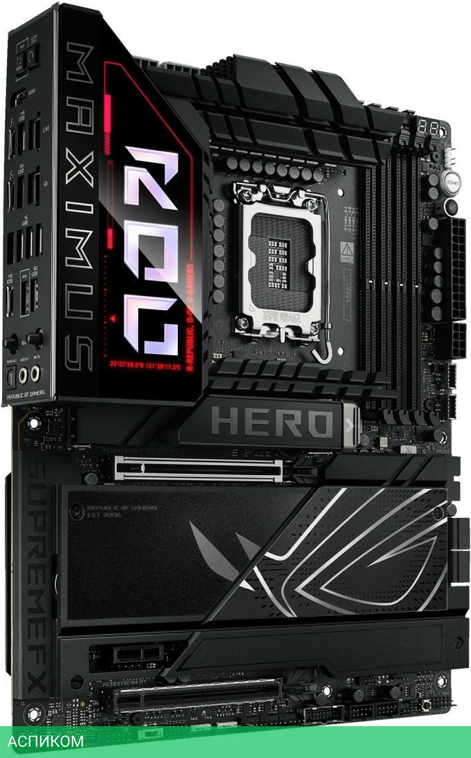 Материнская плата ASUS ROG Maximus Z890 Hero (90MB1ID0-M0EAY0)/LGA1851/ATX/Intel Z890/4xDDR5/4xSATA 3.0/6xM.2/SupremeFX ALC4082/8 каналов (7.1)/2x3.5 мм jack/1x2.5 Gigabit, 1x5 Gigabit/RAID/2x USB 2.0/6x USB 3.2 Gen1 Type-A (+2 внутренних)/4x USB 3.2 Gen2 Type-A/2x USB 3.2 Gen2 Type-C (+1 внутренних)/1x USB 3.2 Gen 2x2/2x USB-C (Thunderbolt 4)/1x PCIe x16 (1x PCIe 5.0 x16)/1xHDMI/BT, WiFi/1хWIFI slot