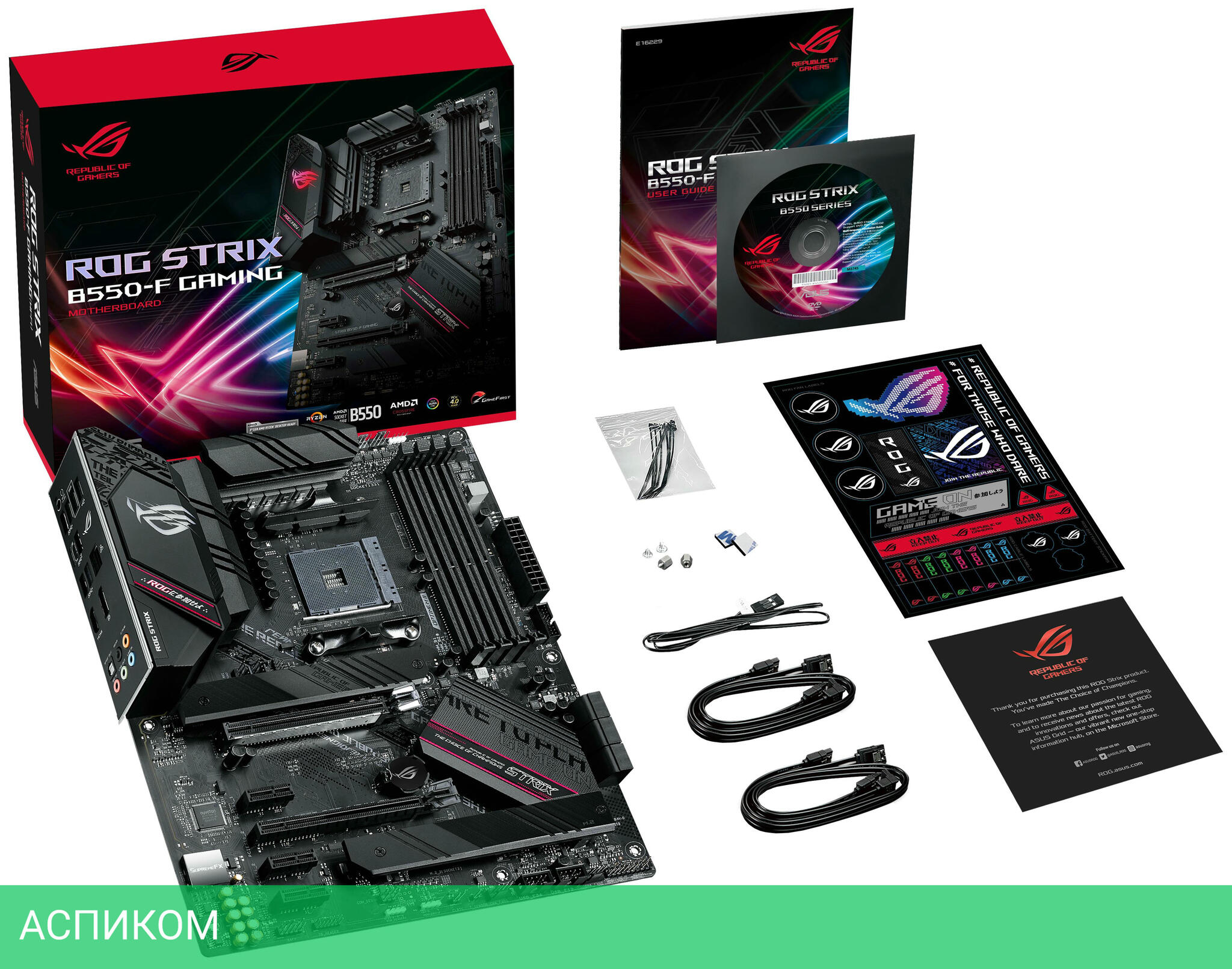 Материнская плата ASUS Rog Strix B550-F Gaming/AM4/ATX/AMD B550/4xDDR4/6xSATA 3.0/2xM.2/SupremeFX S1220A/5x3.5 мм jack/1xDP/RAID/1xHDMI
