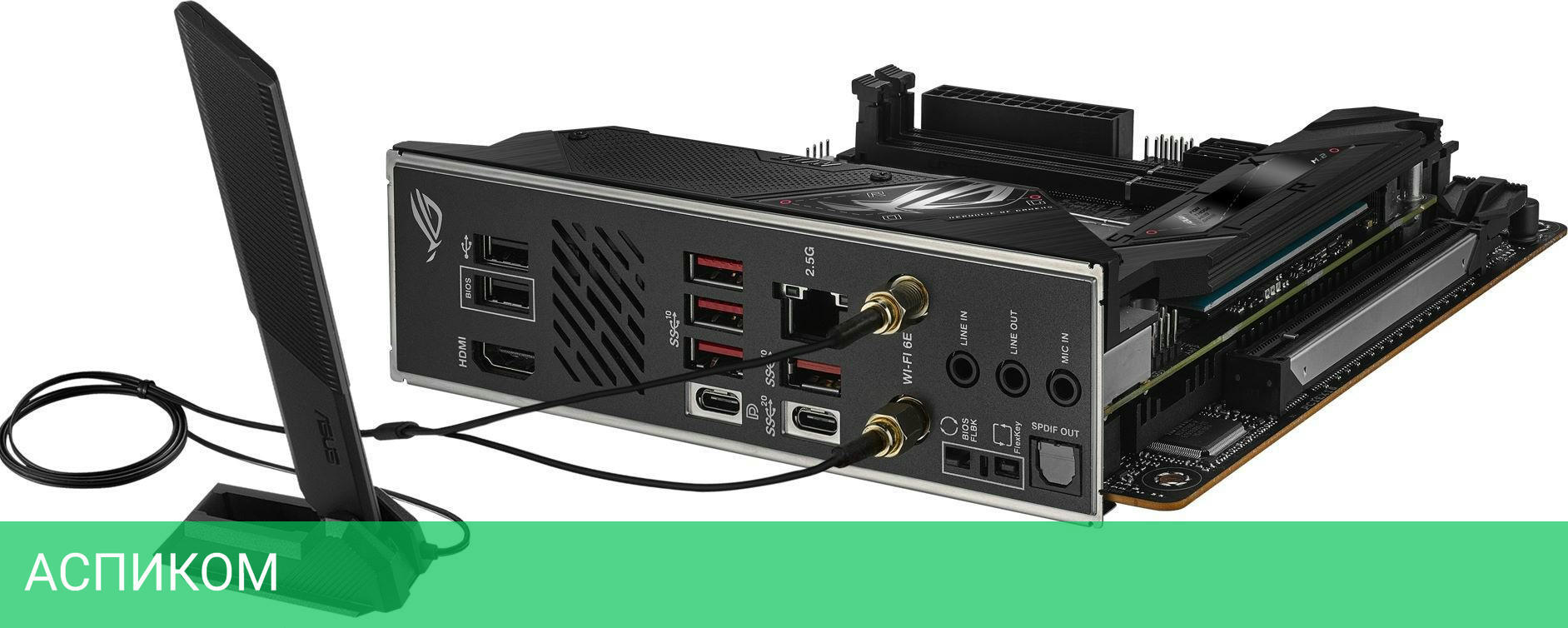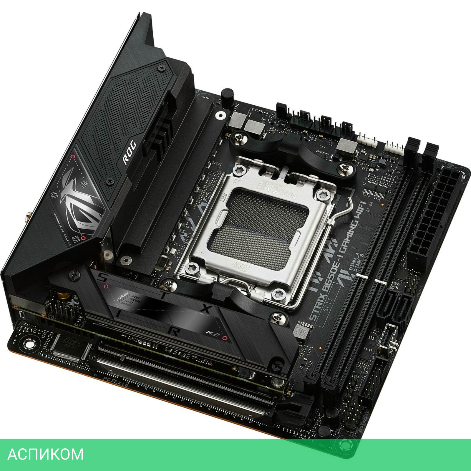 Материнская плата ASUS Rog Strix B650E-I Gaming WiFi DDR5/AM5/Mini-ITX/AMD B650/2xDDR5/2xSATA 3.0/2xM.2/Realtek ALC4080/8 каналов (7.1)/3x3.5 мм jack/1x2.5 Gigabit/RAID/2x USB 2.0 (+1 внутренний)/1x USB 3.2 Gen1 Type-A (внутренних)/4x USB 3.2 Gen2 Type-A/1x USB 3.2 Gen2 Type-C/1x USB 3.2 Gen 2x2/1x PCIe x16 (1x PCIe 5.0 x16)/1xHDMI/BT, WiFi/1хWIFI slot