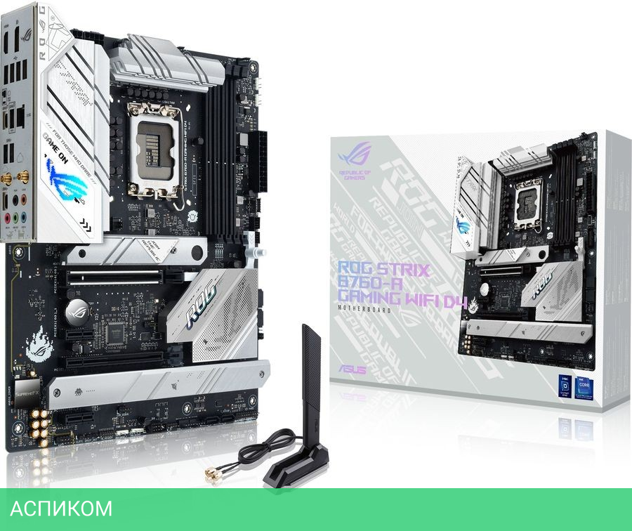 Материнская плата Asus ROG STRIX B760-A Gaming WiFi (90MB1EP0-M1EAY0)/LGA1700/ATX/Intel B760/4xDDR5/4xSATA 3.0/3xM.2/Realtek ALC4080/8 каналов (7.1)/5x3.5 мм jack/1xDP/1x2.5 Gigabit/RAID/4x USB 2.0/2x USB 3.2 Gen1 Type-A (+1 внутренних)/1x USB 3.2 Gen2 Type-A/1x USB 3.2 Gen1 Type-C/1x USB 3.2 Gen2 Type-C (внутренних)/1x USB 3.2 Gen 2x2/2x PCIe x16/2x PCIe x1/1xHDMI/BT, WiFi