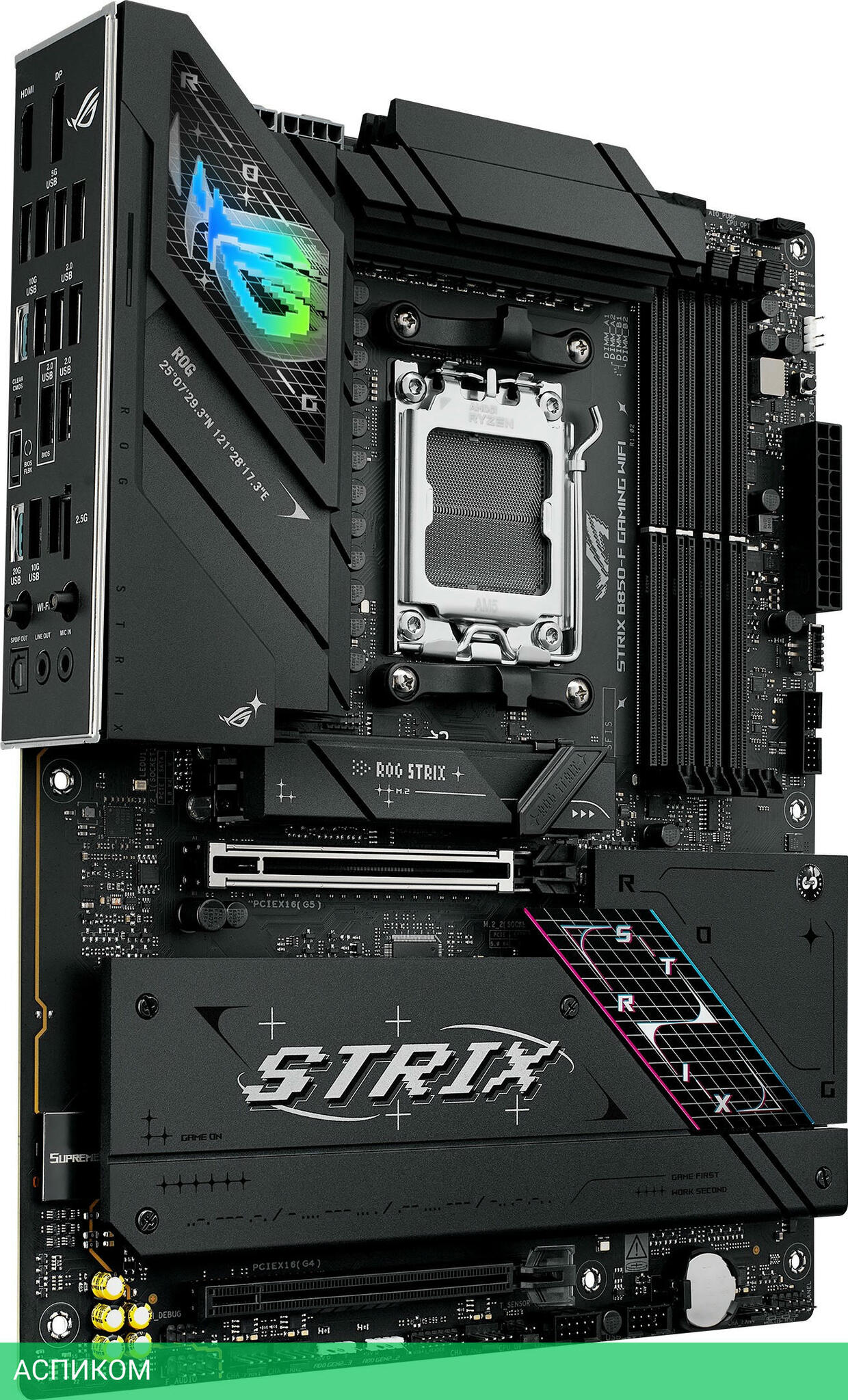Материнская плата Asus ROG Strix B850-F Gaming WIFI (90MB1J70-M0EAY0)/AM5/ATX/AMD B850/4xDDR5/2xSATA 2.0/4xM.2/Realtek ALC4080/8 каналов (7.1)/2x3.5 мм jack/1xDP/1x2.5 Gigabit/RAID/4x USB 2.0 (+2 внутренних)/4x USB 3.2 Gen1 Type-A (+1 внутренних)/2x USB 3.2 Gen2 Type-A/1x USB 3.2 Gen2 Type-C (+1 внутренних)/1x USB 3.2 Gen 2x2/1x USB4/2x PCIe x16/1xHDMI/BT, WiFi