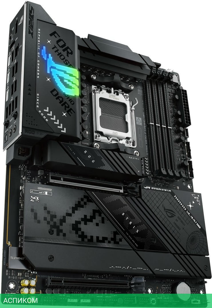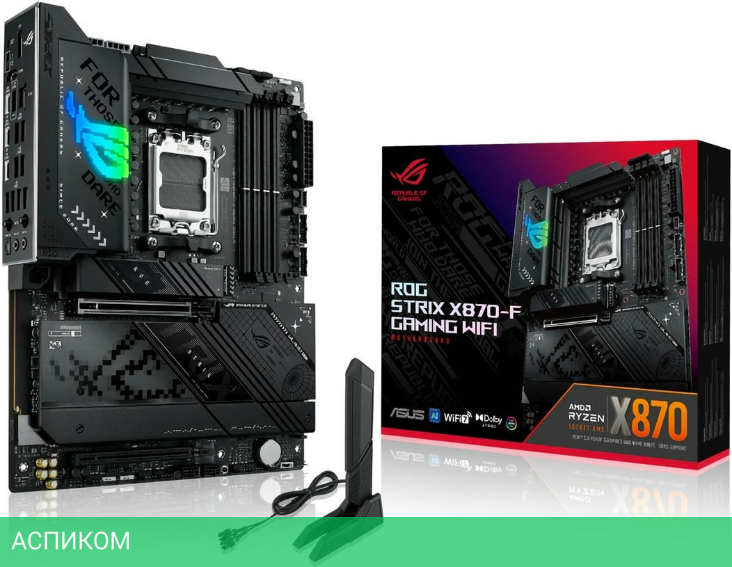 Материнская плата ASUS ROG Strix X870-F Gaming WiFi (90MB1IV0-M0EAY0)/AM5/ATX/AMD X870/4xDDR5/2xSATA 3.0/4xM.2/SupremeFX ALC4080/8 каналов (7.1)/2x3.5 мм jack/1xDP/1x2.5 Gigabit/RAID/2x USB 2.0/6x USB 3.2 Gen1 Type-A (+1 внутренний)/5x USB 3.2 Gen2 Type-A/1x USB 3.2 Gen2 Type-C/1x USB 3.2 Gen 2x2/2x USB4/1x PCIe x16 (1x PCIe 5.0 x16)/1xHDMI/BT, WiFi/1хWIFI slot
