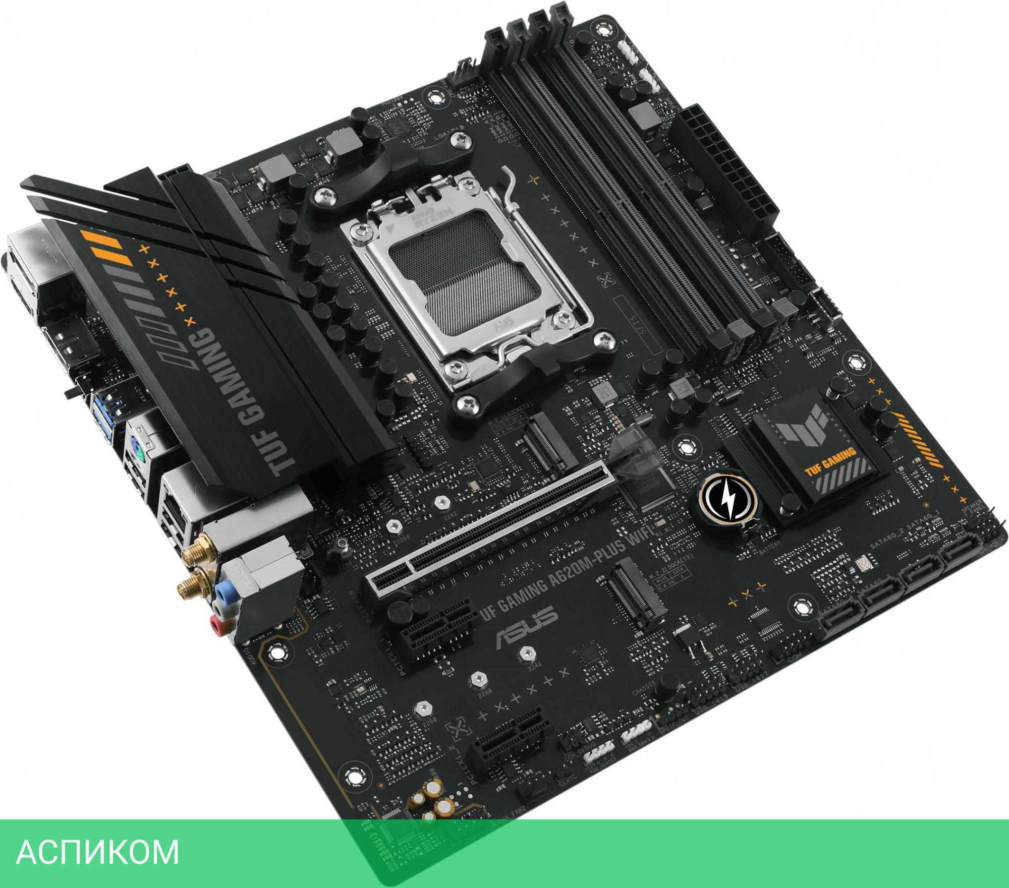 Материнская плата ASUS TUF Gaming A620M-Plus WiFi (90MB1F00-M0EAY0)/AM5/mATX/AMD A620/4xDDR5/4xSATA 3.0/2xM.2/8 каналов (7.1)/3x3.5 мм jack/1xDP/1x2.5 Gigabit/RAID/4x USB 2.0 (+2 внутренних)/2x USB 3.2 Gen1 Type-A (+1 внутренних)/1x USB 3.2 Gen1 Type-C/1x PCIe x16 (1x PCIe 4.0 x16)/2x PCIe x1/1xHDMI/BT, WiFi/1хWIFI slot/1xCOM (внутр.)