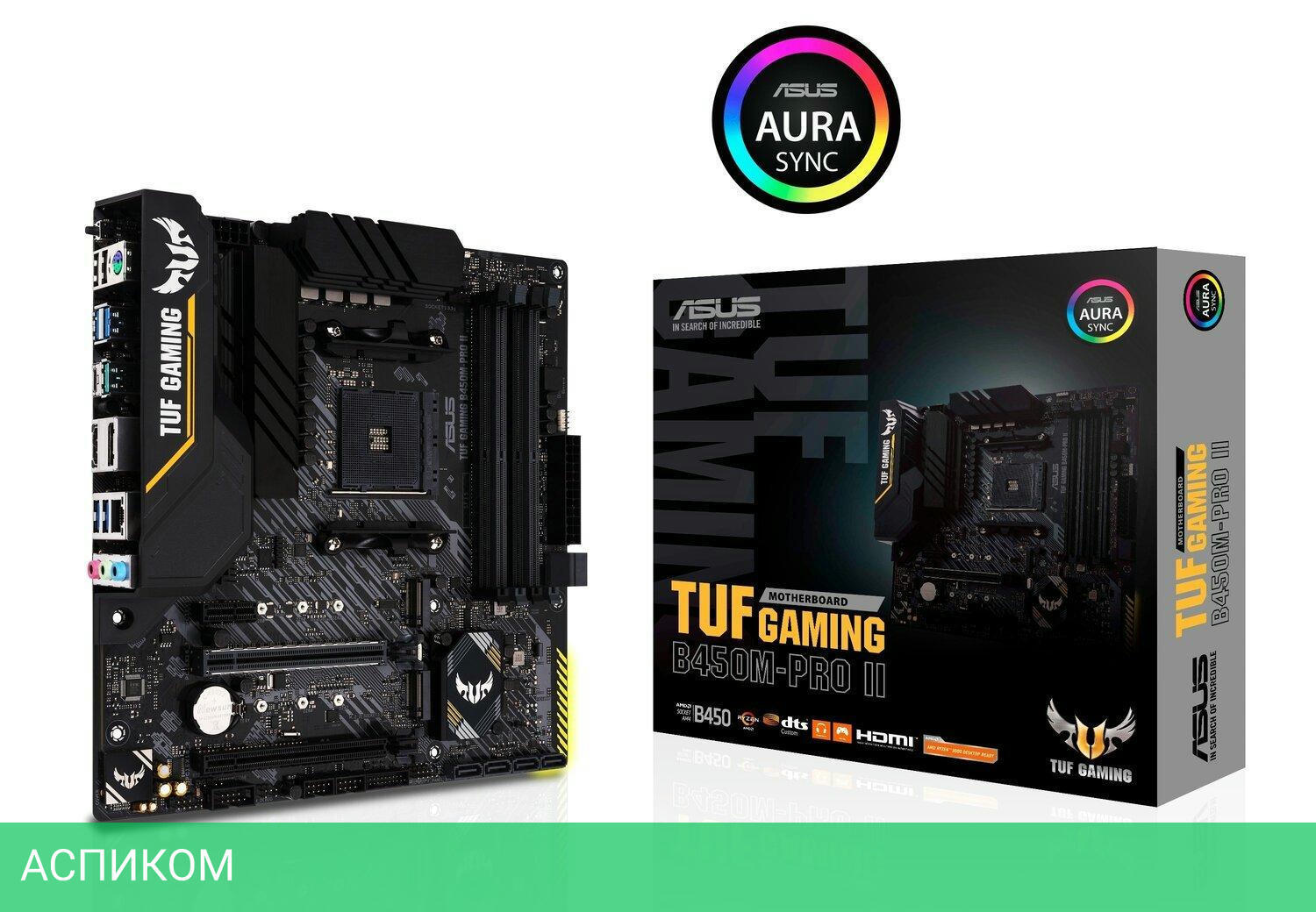 Материнская плата ASUS TUF Gaming B450M-Pro II DDR4/AM4/mATX/AMD B450/4xDDR4/6xSATA 3.0/1xM.2/Realtek ALC887/3x3.5 мм jack/1xDP/RAID/1xHDMI