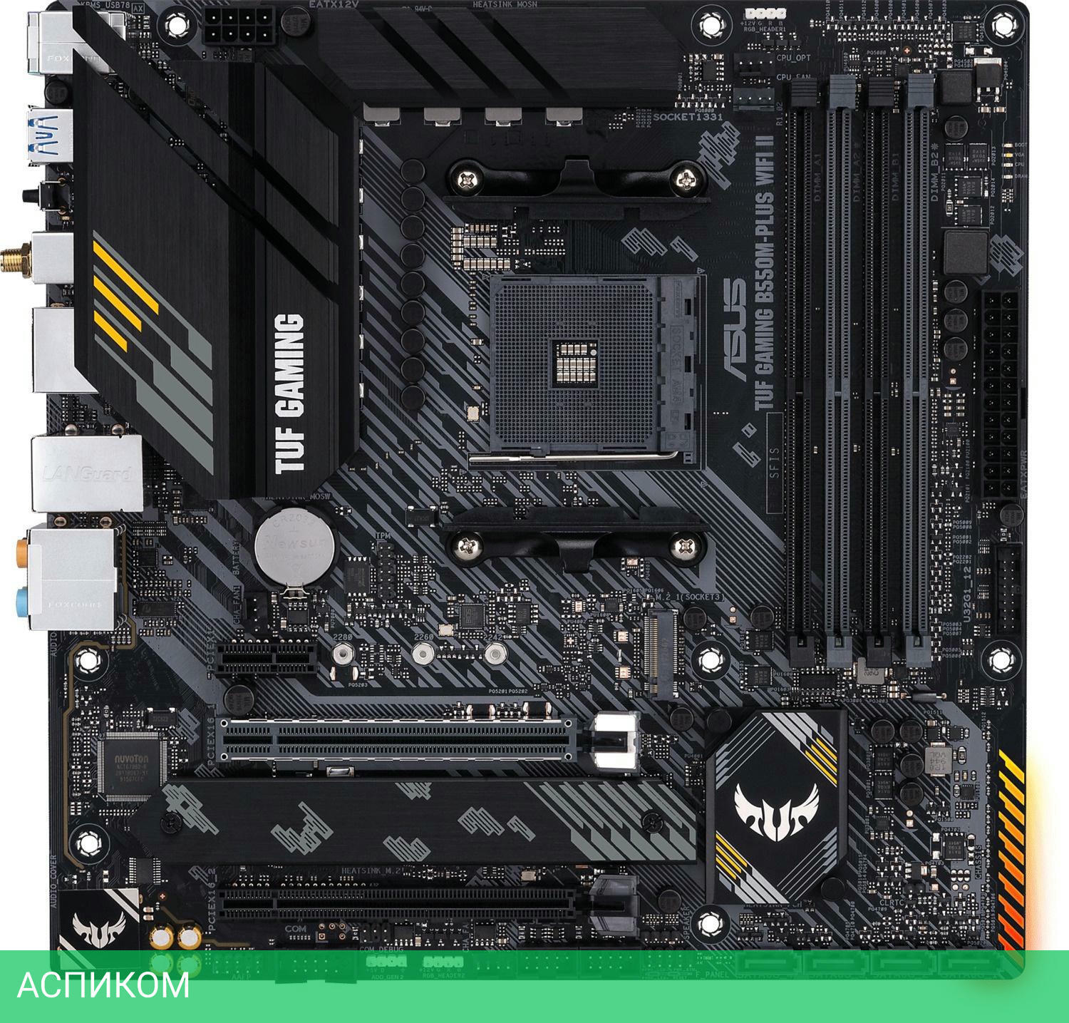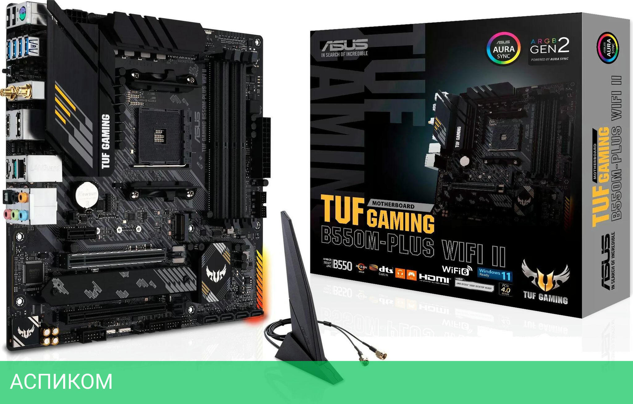 Материнская плата ASUS TUF Gaming B550M-Plus WiFi II (90MB19Y0-M0EAY0)/AM4/mATX/AMD B550/4xDDR4/4xSATA 3.0/2xM.2/8 каналов (7.1)/5x3.5 мм jack/1xDP/1x2.5 Gigabit/RAID/2x USB 2.0 (+2 внутренних)/4x USB 3.2 Gen1 Type-A (+1 внутренних)/1x USB 3.2 Gen2 Type-A/1x USB 3.2 Gen2 Type-C/2x PCIe x16 (1x PCIe 4.0 x16, 1x PCIe 3.0 x4)/1x PCIe x1 (1x PCIe 3.0 x1)/1xHDMI/BT, WiFi/1xCOM (внутр.)/1xPS/2