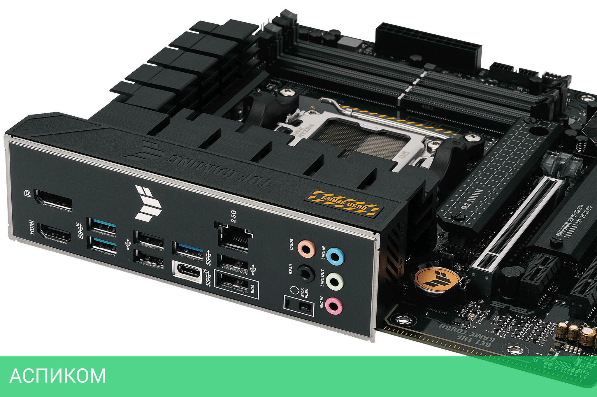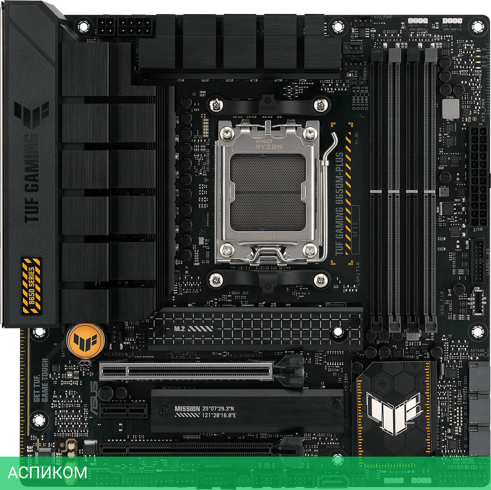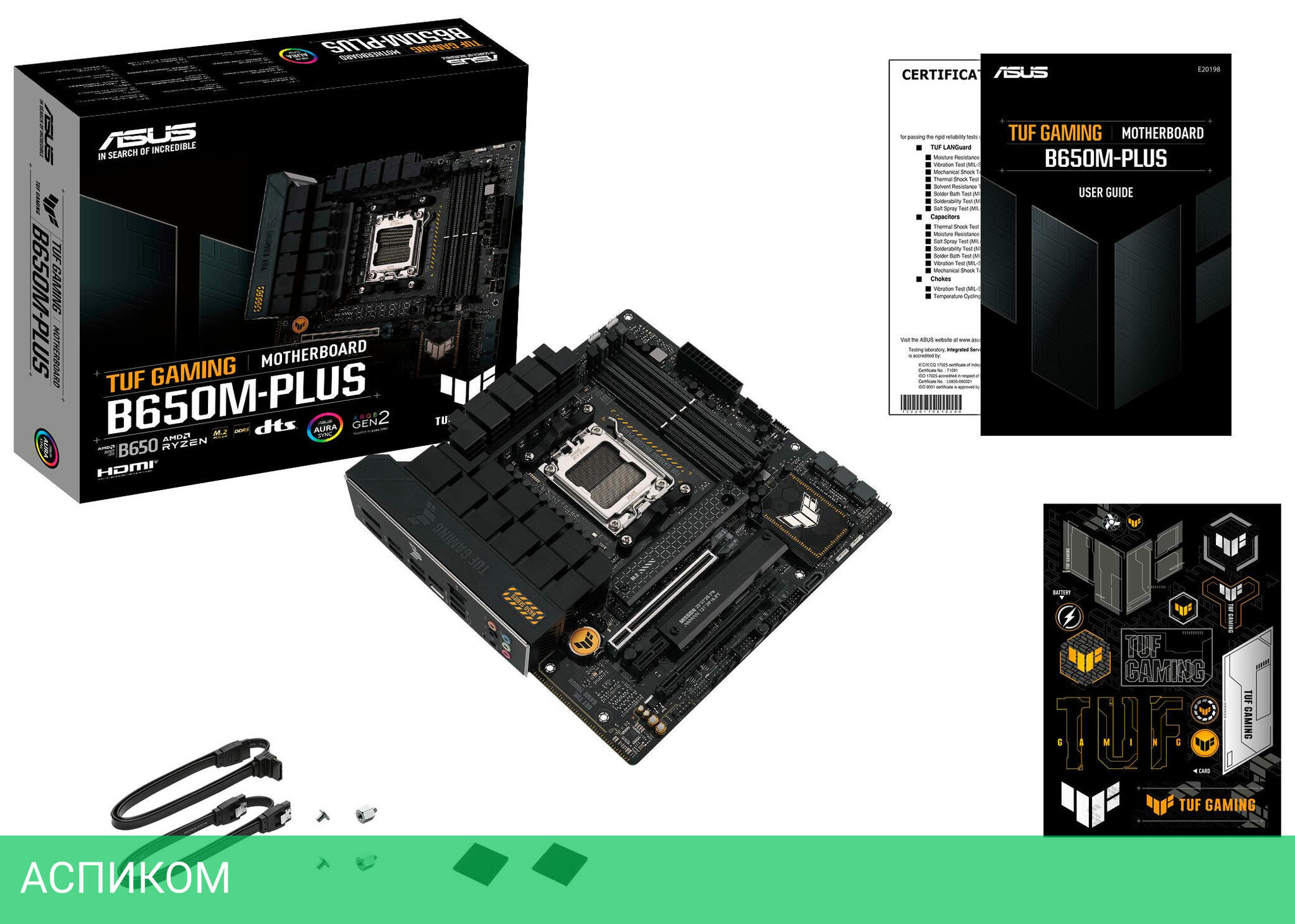 Материнская плата ASUS TUF Gaming B650M-Plus DDR5/AM5/mATX/AMD B650/4xDDR5/4xSATA 3.0/2xM.2/8 каналов (7.1)/5x3.5 мм jack/1xDP/1x2.5 Gigabit/RAID/4x USB 2.0 (+2 внутренних)/1x USB 3.2 Gen1 Type-A (+1 внутренних)/2x USB 3.2 Gen2 Type-A/1x USB 3.2 Gen1 Type-C/1x USB 3.2 Gen 2x2/2x PCIe x16 (1x PCIe 4.0 x16, 1x PCIe 4.0 x4)/1x PCIe x1 (1x PCIe 4.0 x1)/1xHDMI/1xCOM (внутр.)