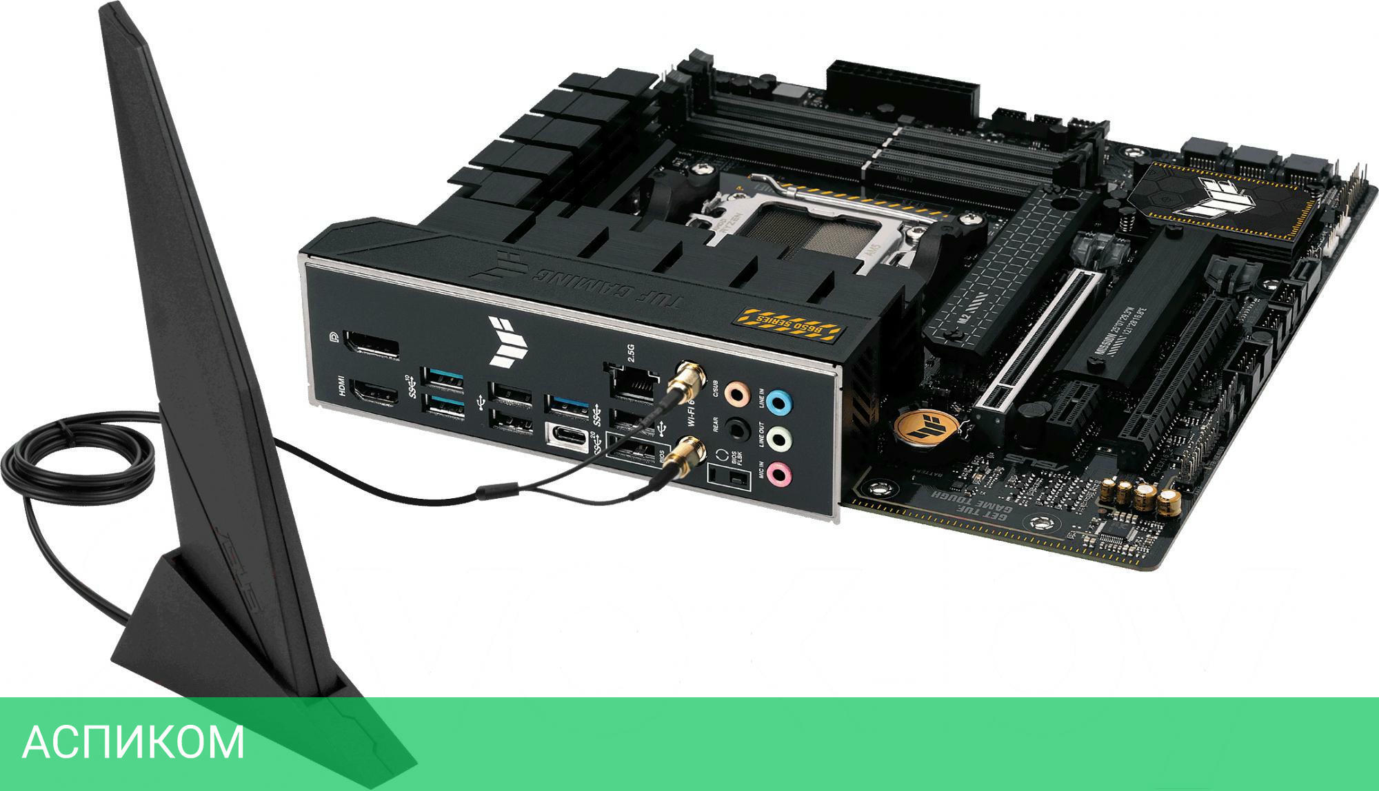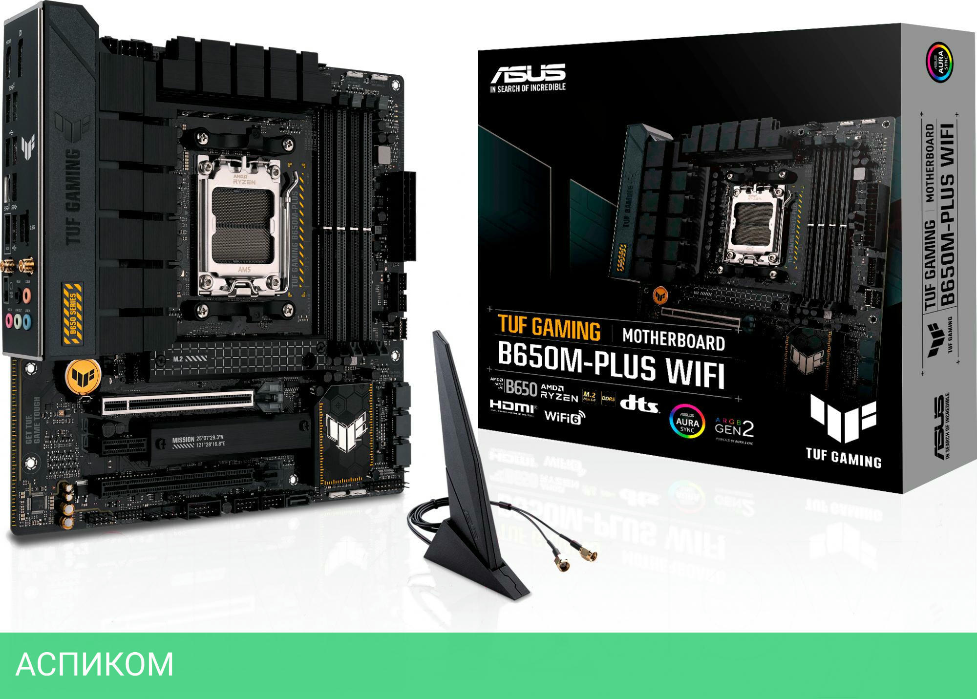 Материнская плата ASUS TUF Gaming B650M-Plus WiFi (90MB1BF0-M0EAY0)/AM5/mATX/AMD B650/4xDDR5/4xSATA 3.0/2xM.2/8 каналов (7.1)/5x3.5 мм jack/1xDP/1x2.5 Gigabit/RAID/4x USB 2.0 (+2 внутренних)/1x USB 3.2 Gen1 Type-A (+1 внутренних)/2x USB 3.2 Gen2 Type-A/1x USB 3.2 Gen1 Type-C/1x USB 3.2 Gen 2x2/2x PCIe x16 (1x PCIe 4.0 x16, 1x PCIe 4.0 x4)/1x PCIe x1 (1x PCIe 4.0 x1)/1xHDMI/BT, WiFi/1xCOM (внутр.)