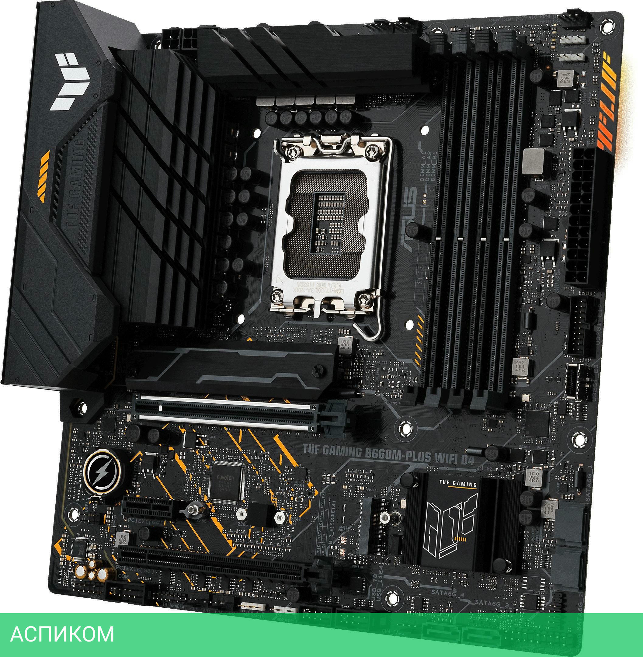 Материнская плата ASUS TUF Gaming B660M-Plus WiFi D4 DDR4/LGA1700/mATX/Intel B660/4xDDR4/4xSATA 3.0/8 каналов (7.1)/5x3.5 мм jack/1xDP/1x1 Gigabit/RAID/1xHDMI/BT, WiFi