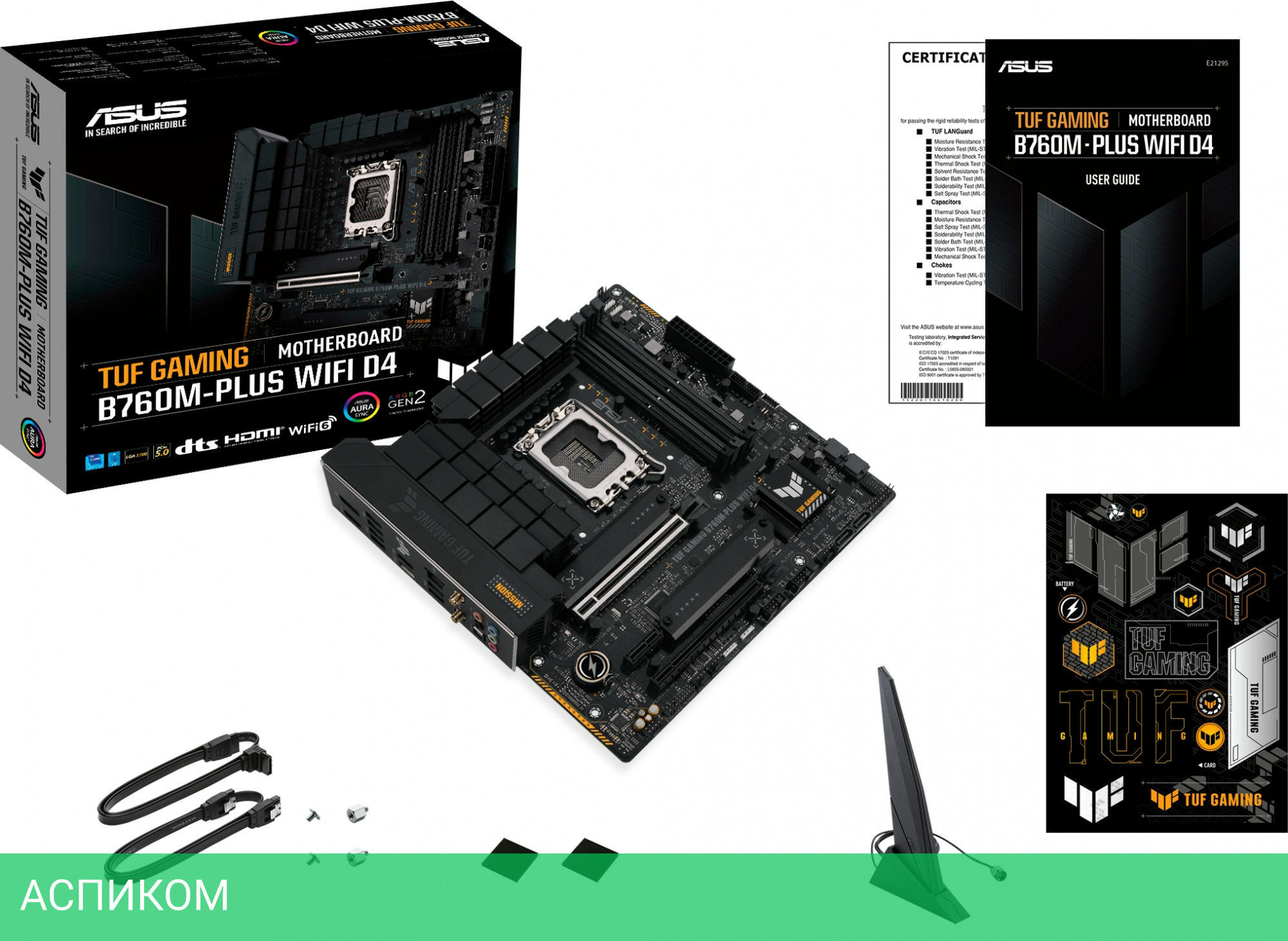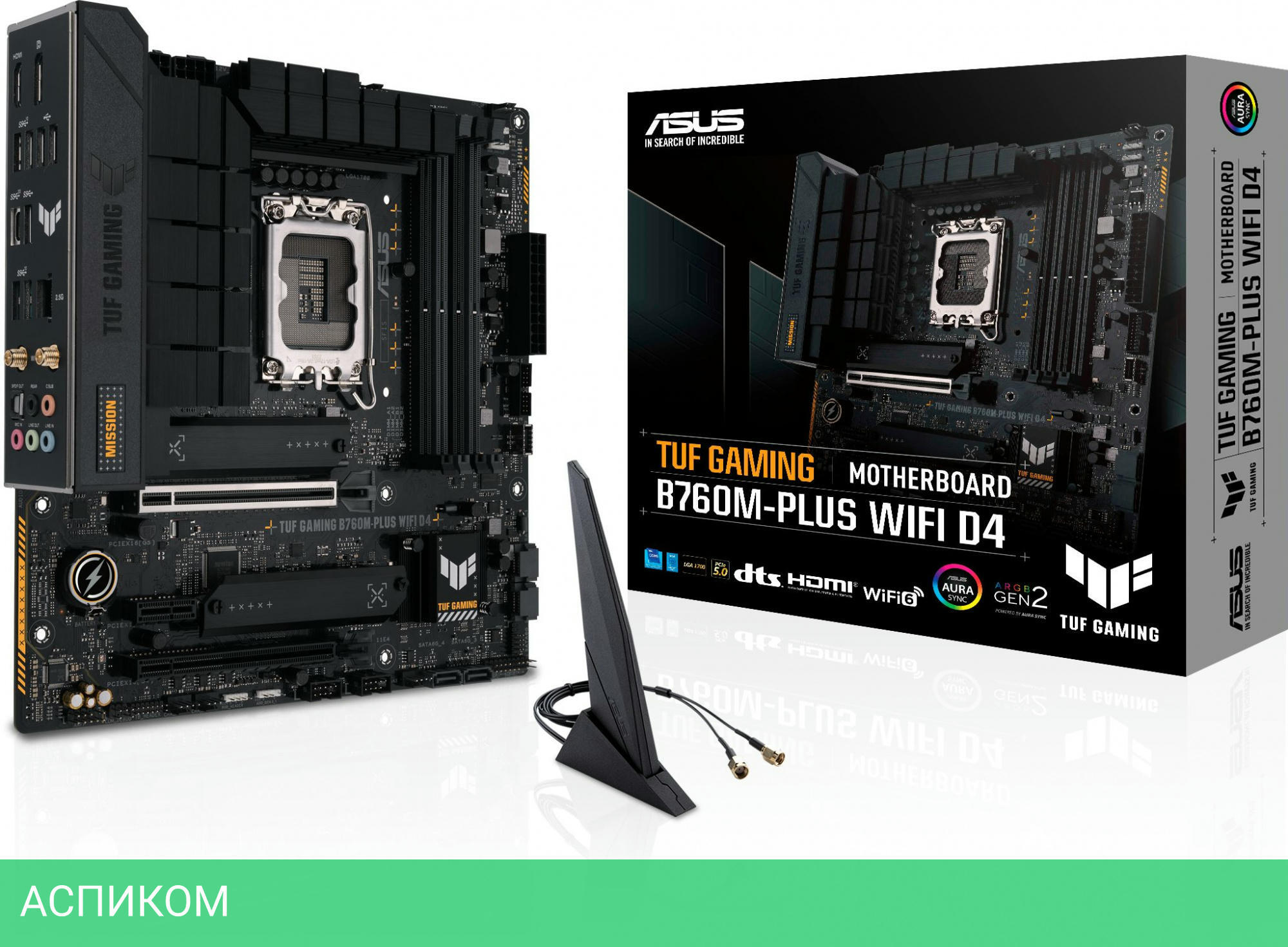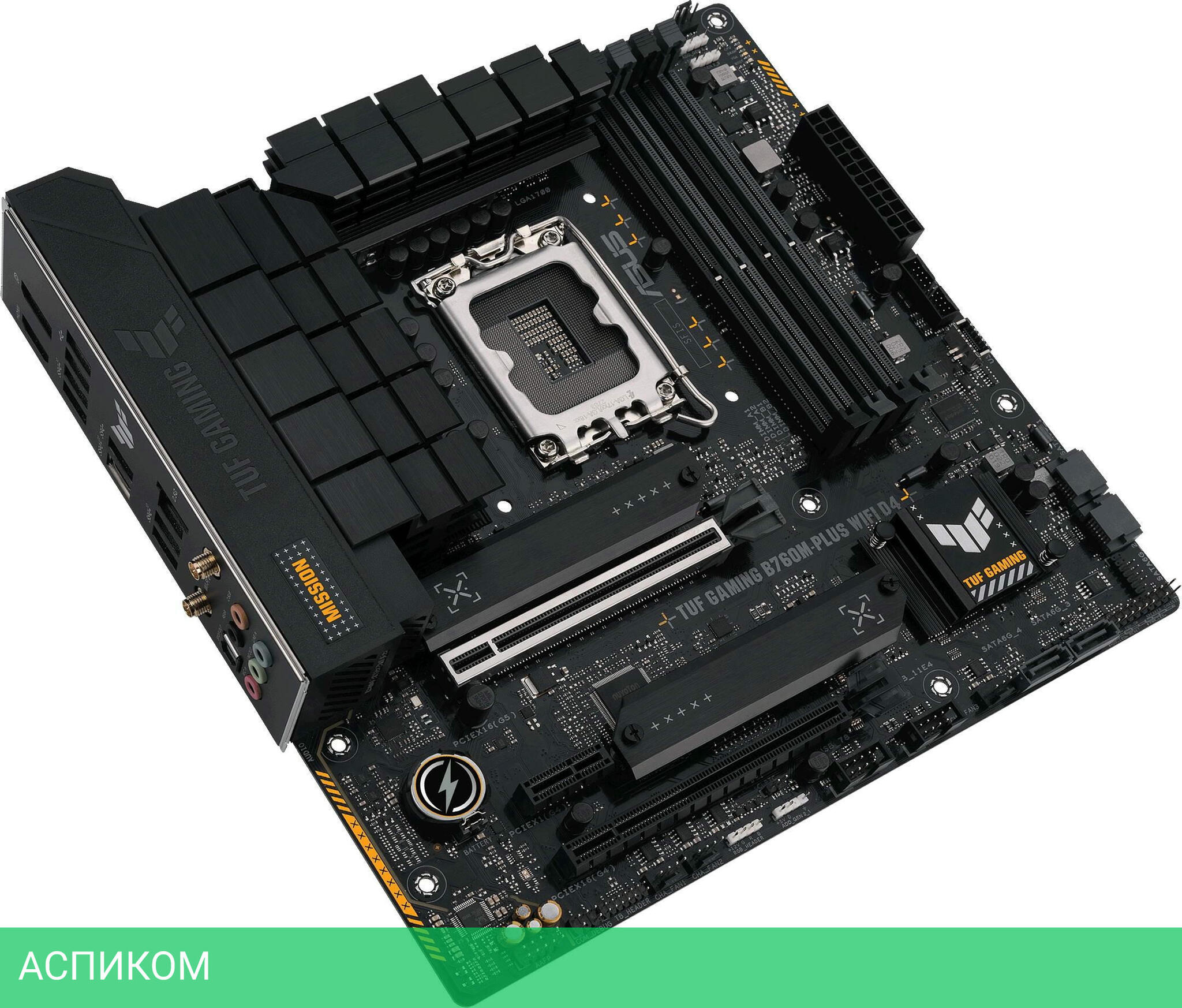 Материнская плата ASUS TUF Gaming B760M-Plus WiFi D4 Soc-1700 Intel B760 DDR4/LGA1700/mATX/Intel B760/4xDDR4/4xSATA 3.0/2xM.2/8 каналов (7.1)/5x3.5 мм jack/1xDP/1x2.5 Gigabit/RAID/2x USB 2.0 (+2 внутренних)/1x USB 3.2 Gen1 Type-A (+1 внутренних)/4x USB 3.2 Gen2 Type-A/1x USB 3.2 Gen1 Type-C/1x USB 3.2 Gen 2x2/2x PCIe x16 (1x PCIe 5.0 x16, 1x PCIe 4.0 x4)/1x PCIe x1 (1x PCIe 4.0 x1)/1xHDMI/BT, WiFi