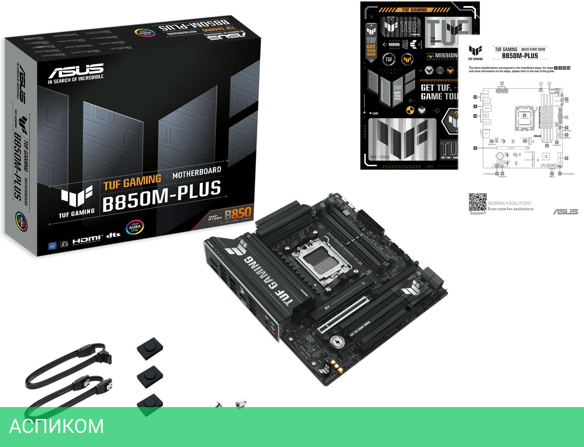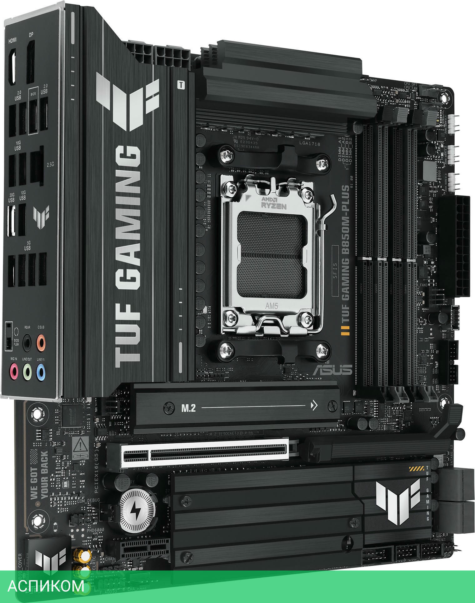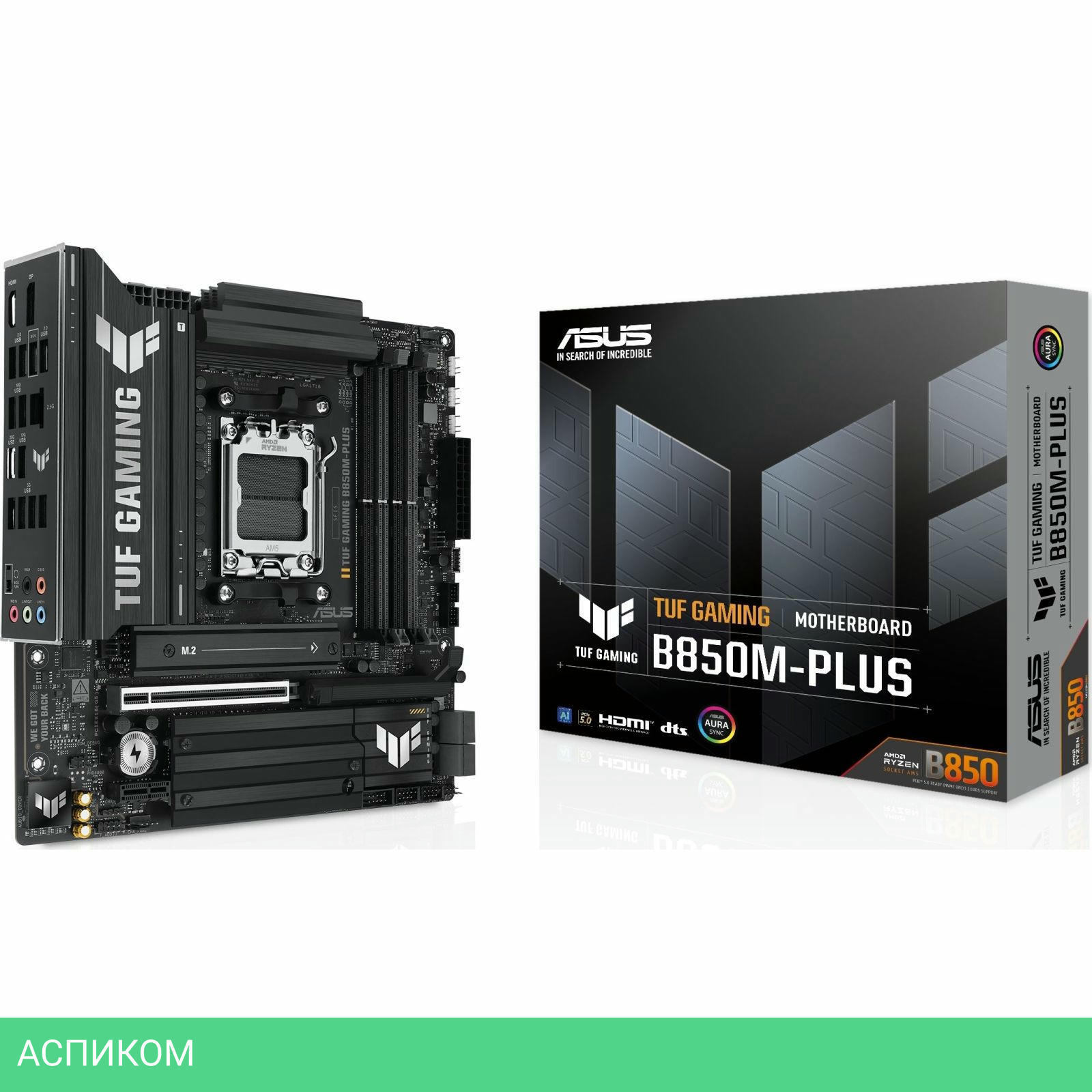 Материнская плата Asus TUF Gaming B850M-Plus (90MB1IX0-M0EAY0)/AM5/mATX/AMD B850/4xDDR5/4xSATA 3.0/3xM.2/Realtek ALC1220P/8 каналов (7.1)/5x3.5 мм jack/1xDP/1x2.5 Gigabit/RAID/4x USB 2.0 (+2 внутренних)/4x USB 3.2 Gen1 Type-A (+1 внутренних)/3x USB 3.2 Gen2 Type-A/1x USB 3.2 Gen2 Type-C (внутренних)/1x USB 3.2 Gen 2x2/1x PCIe x16/2x PCIe x1/1xHDMI/1xCOM (внутр.)