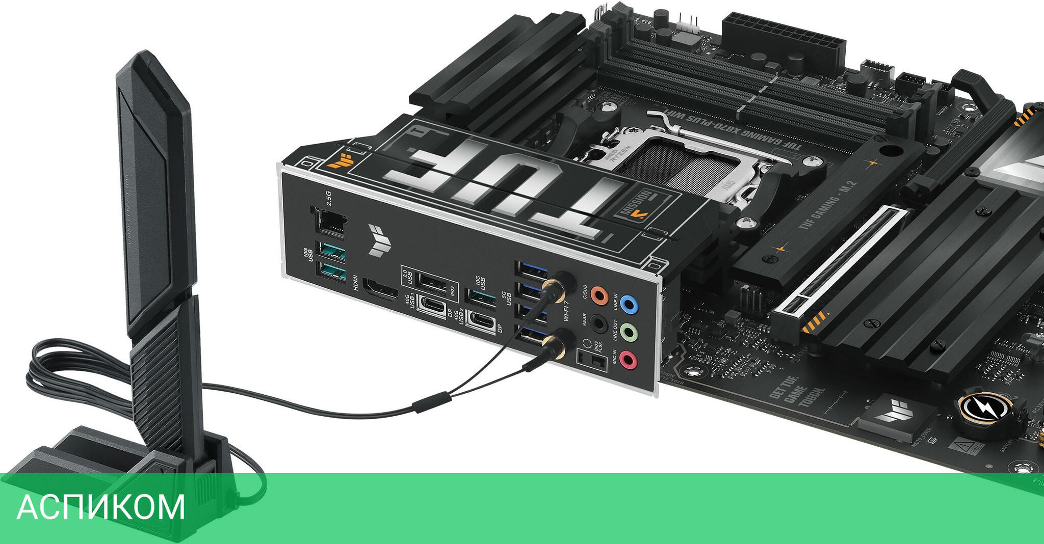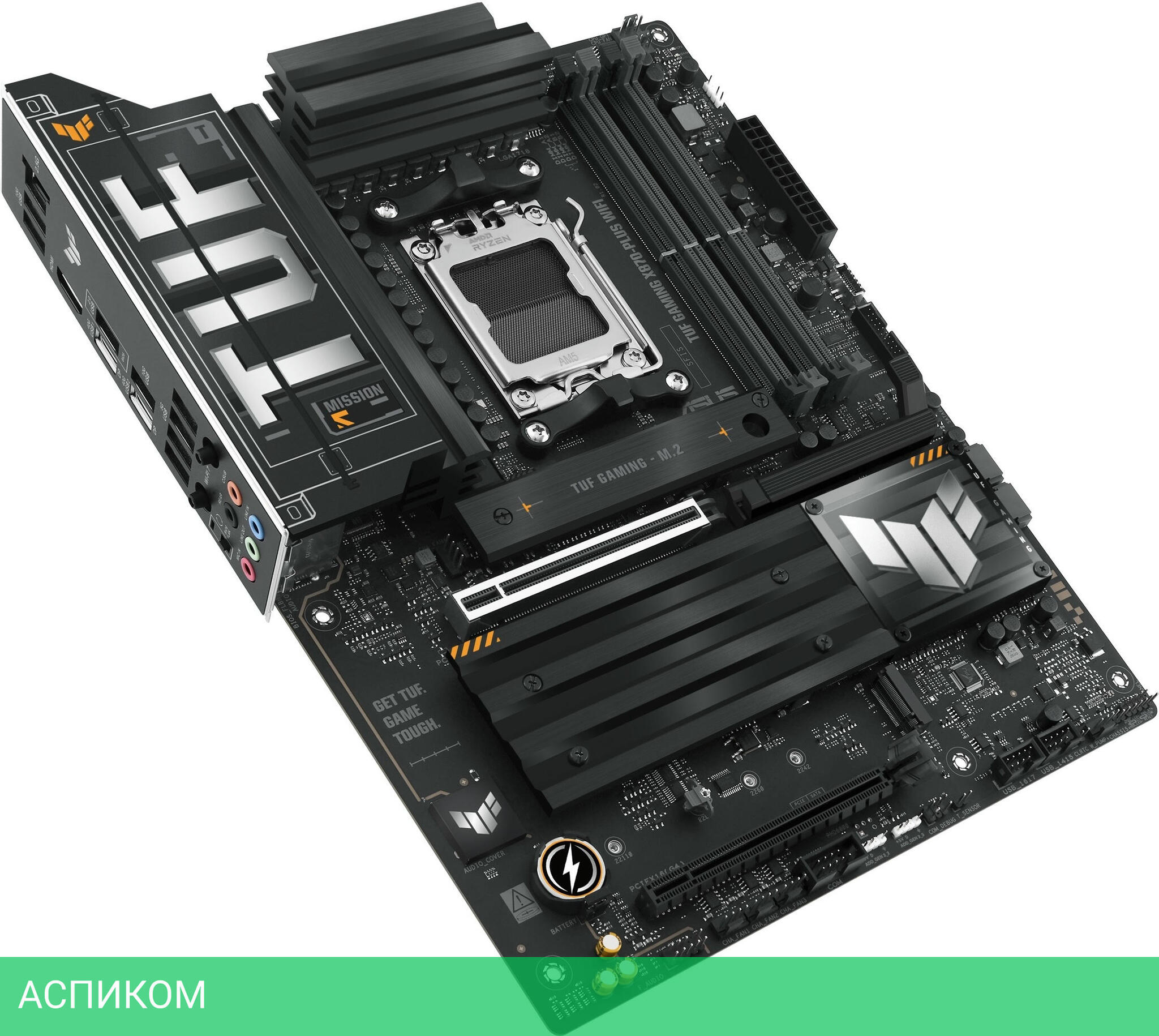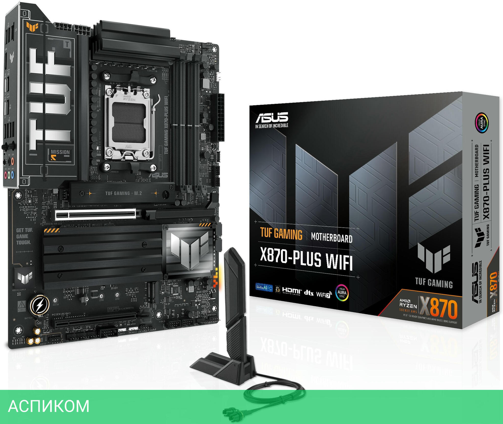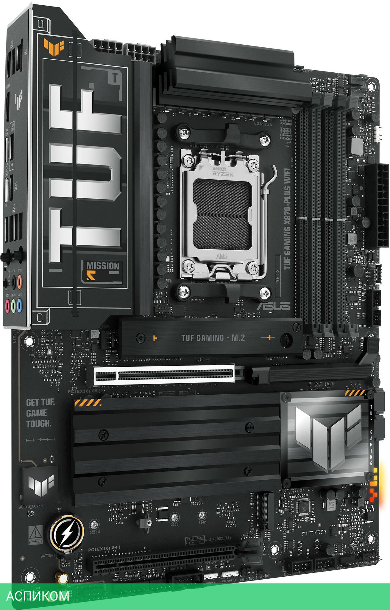 Материнская плата ASUS TUF Gaming X870-Plus WiFi (90MB1IU0-M0EAY0)/AM5/ATX/AMD X870/4xDDR5/2xSATA 3.0/4xM.2/Realtek ALC1220P/8 каналов (7.1)/5x3.5 мм jack/3x USB 2.0 (+1 внутренний)/5x USB 3.2 Gen1 Type-A (+1 внутренних)/3x USB 3.2 Gen2 Type-A/1x USB 3.2 Gen 2x2/2x USB4/1x PCIe x16 (1x PCIe 5.0 x16)/1xHDMI/BT, WiFi/1хWIFI slot