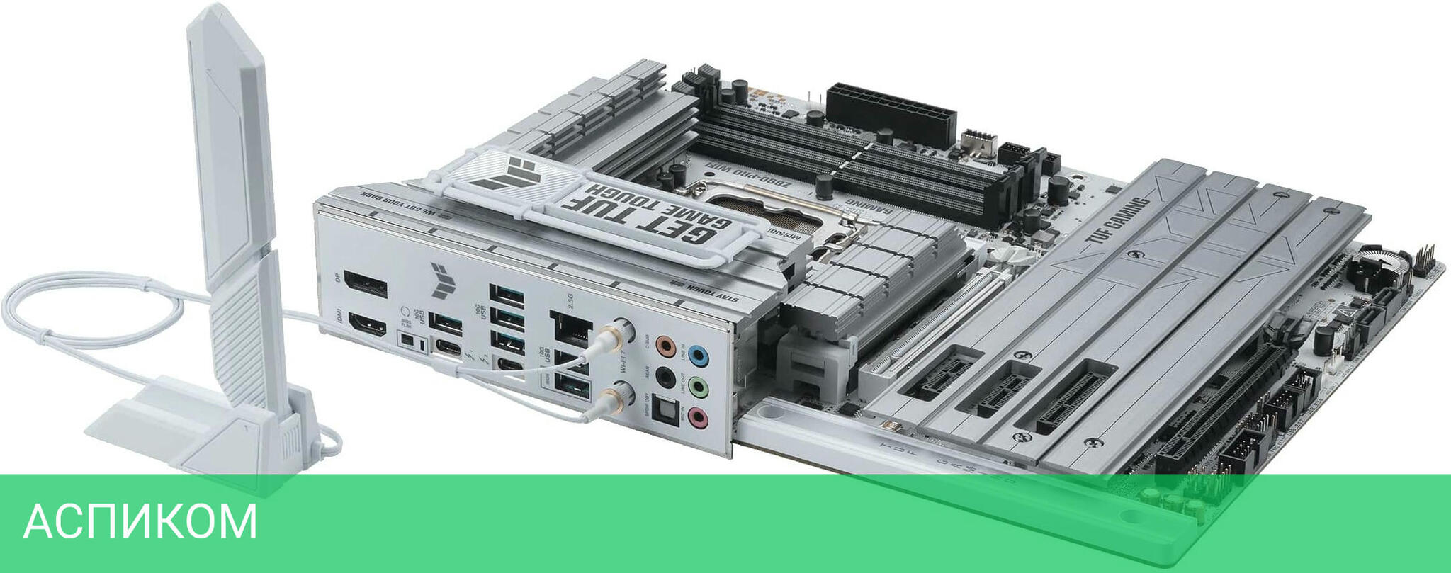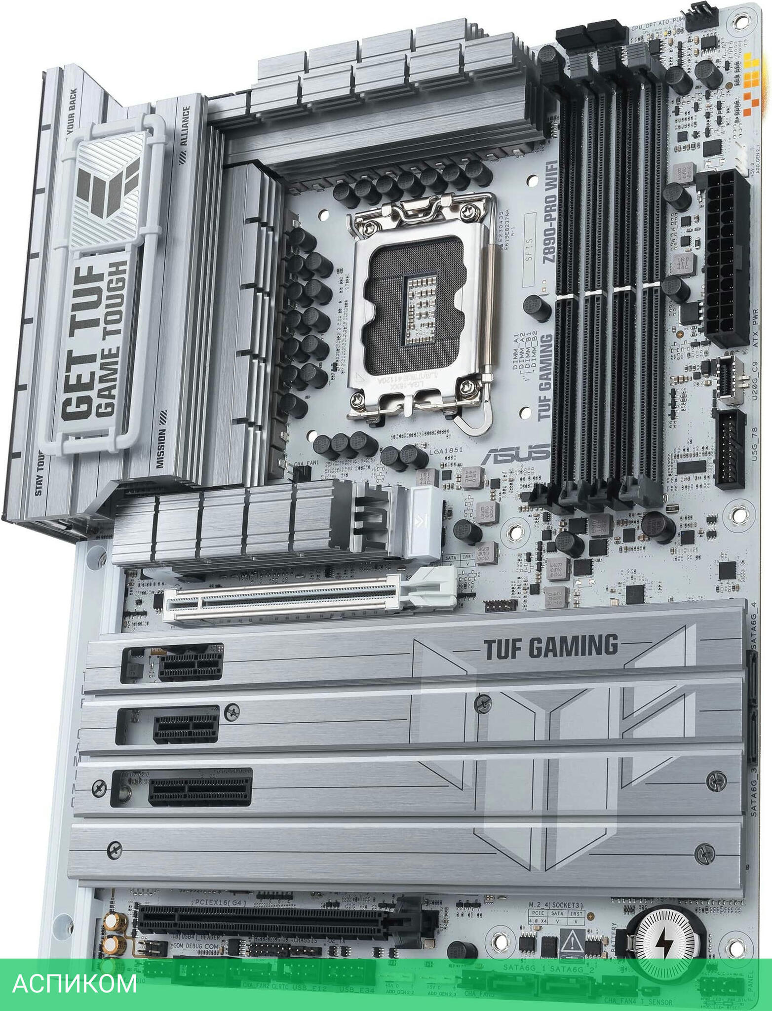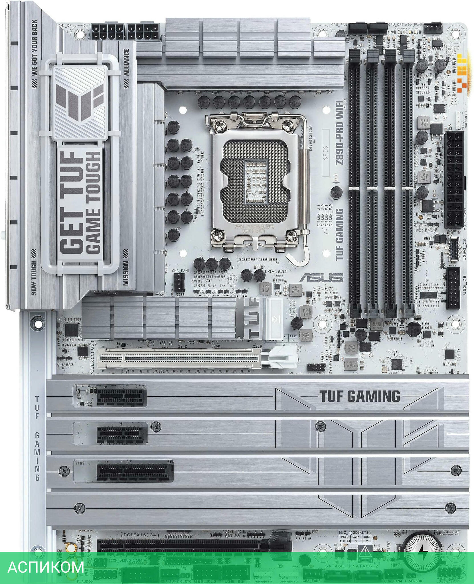 Материнская плата ASUS TUF Gaming Z890-Pro WiFi (90MB1IR0-M0EAY0)/LGA1851/ATX/Intel Z890/4xDDR5/4xSATA 3.0/4xM.2/Realtek ALC1220P/8 каналов (7.1)/5x3.5 мм jack/1xDP/1x2.5 Gigabit/RAID/2x USB 2.0 (внутренних)/1x USB 3.2 Gen1 Type-A (внутренних)/6x USB 3.2 Gen2 Type-A/1x USB 3.2 Gen 2x2 (внутренних)/2x USB-C (Thunderbolt 4)/2x PCIe x16 (1x PCIe 5.0 x16, 1x PCIe 4.0 x4)/2x PCIe x1 (2x PCIe 4.0 x1)/1x PCIe x4 (1x PCIe 4.0 x4)/1xHDMI/BT, WiFi