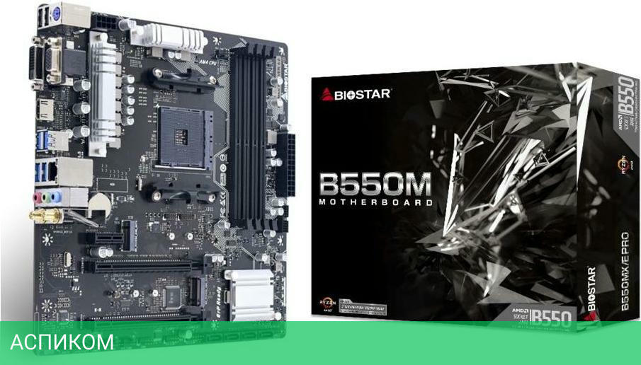 Материнская плата Biostar B550MX E Pro DDR4/AM4/mATX/AMD B550/4xDDR4/4xSATA 3.0/2xM.2/Realtek ALC897/8 каналов (7.1)/3x3.5 мм jack/RAID/1xHDMI/1xVGA (D-Sub)