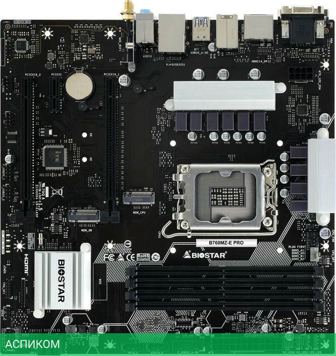 Материнская плата Biostar B760MZ-E Pro Ver. 6.0/LGA1700/mATX/Intel B760/Realtek ALC897/8 каналов (7.1)