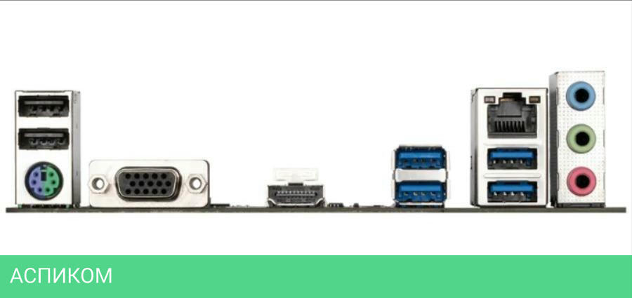 PS/2, D-Sub, HDMI, 4xUSB 3.2 Gen 1, 2xUSB 2.0/1.1, LAN RJ-45